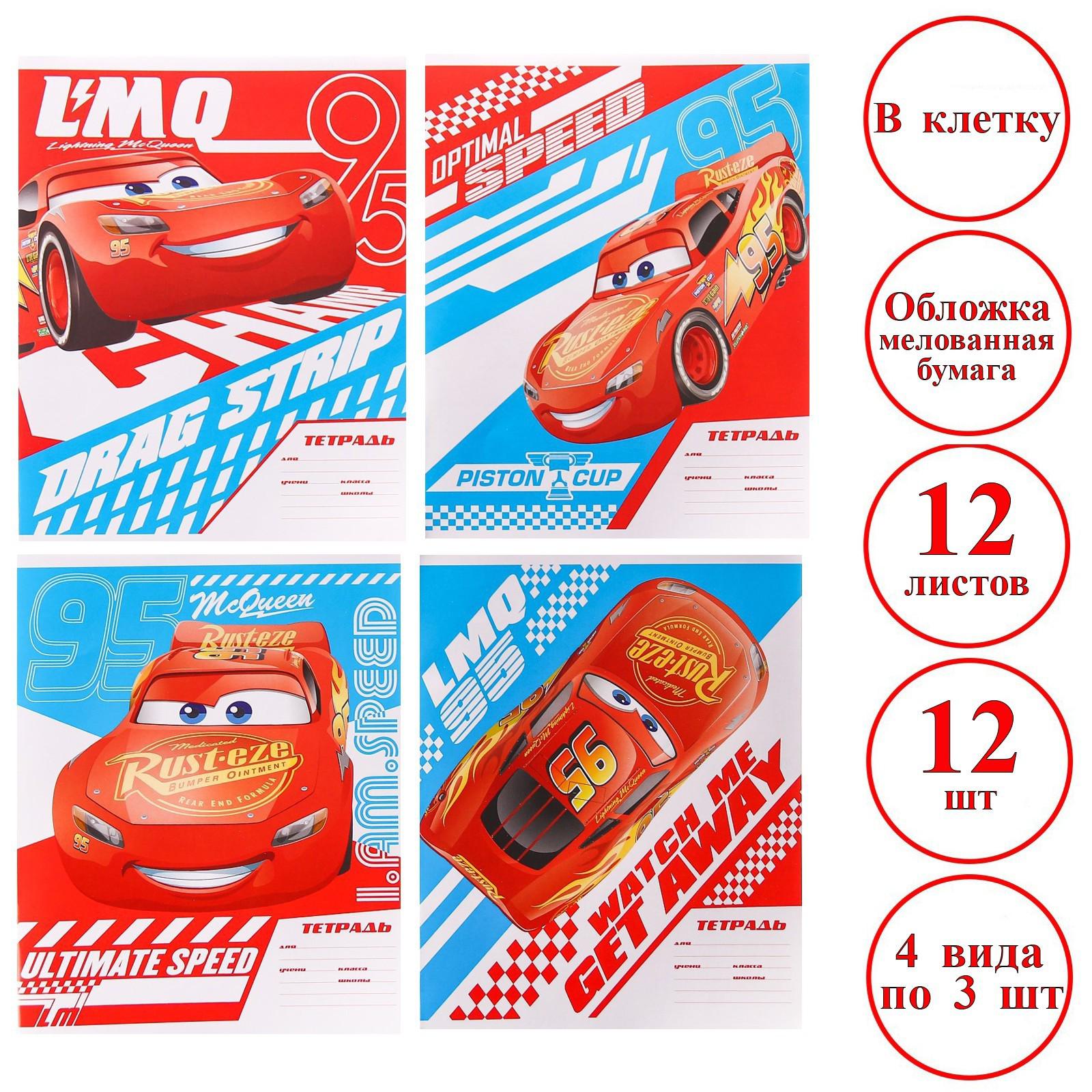 Комплект тетрадей из 12 шт "Тачки", 12 листов, в клетку, обложка бумага мелованная,