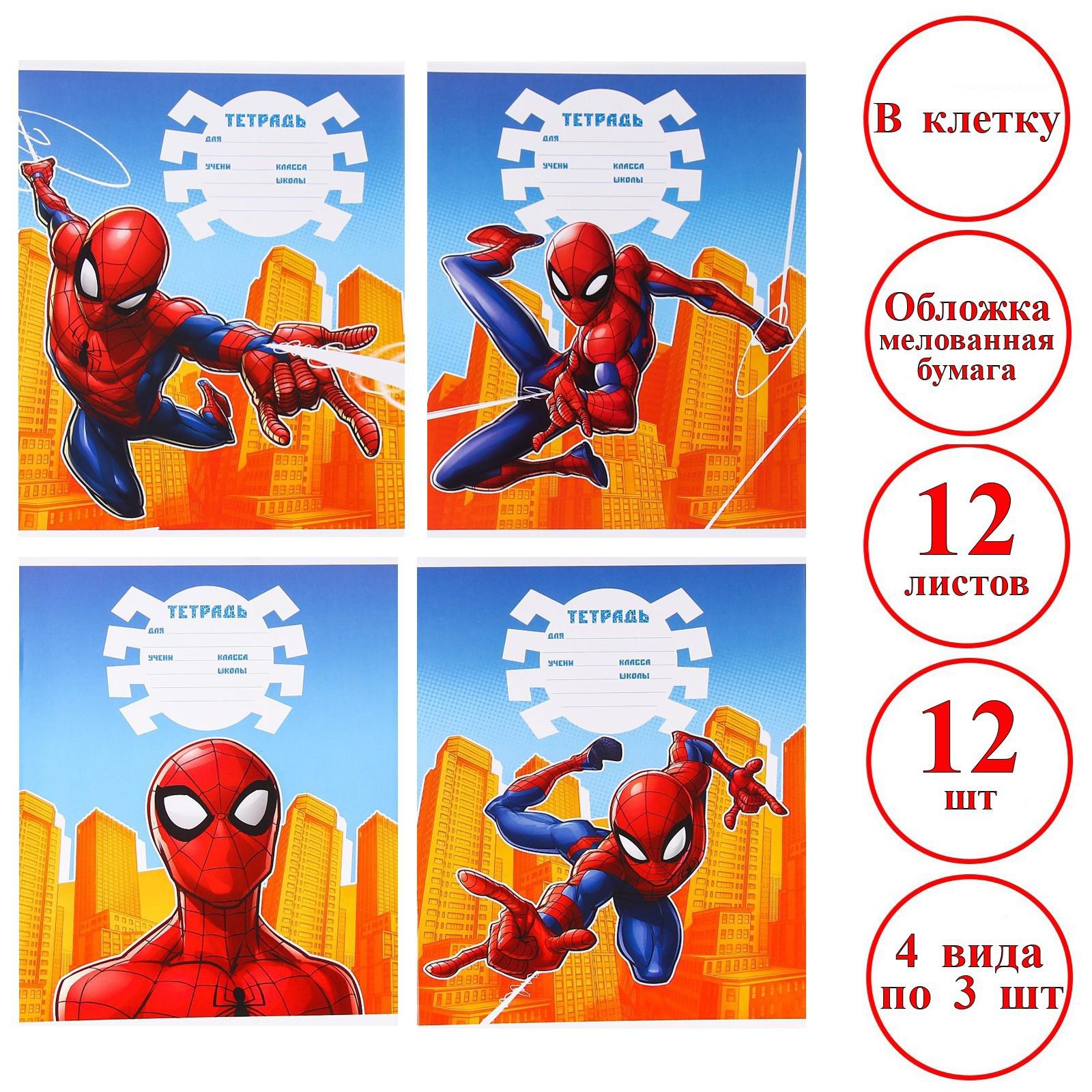 Комплект тетрадей из 12 шт "Человек-паук", 12 листов, в клетку, обложка бумага мелованная,