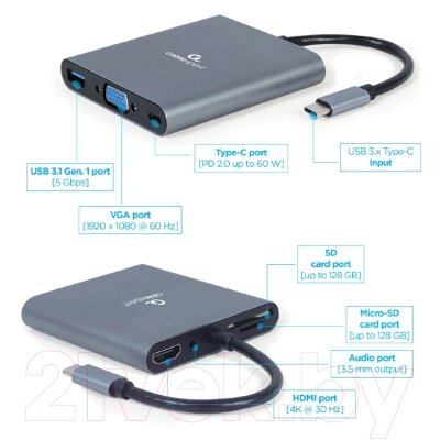 • Розетка SD, USB 2.0 Type-A, HDMI, USB Type-C, VGA, 3.5 мм jack, micro SDHC/XC