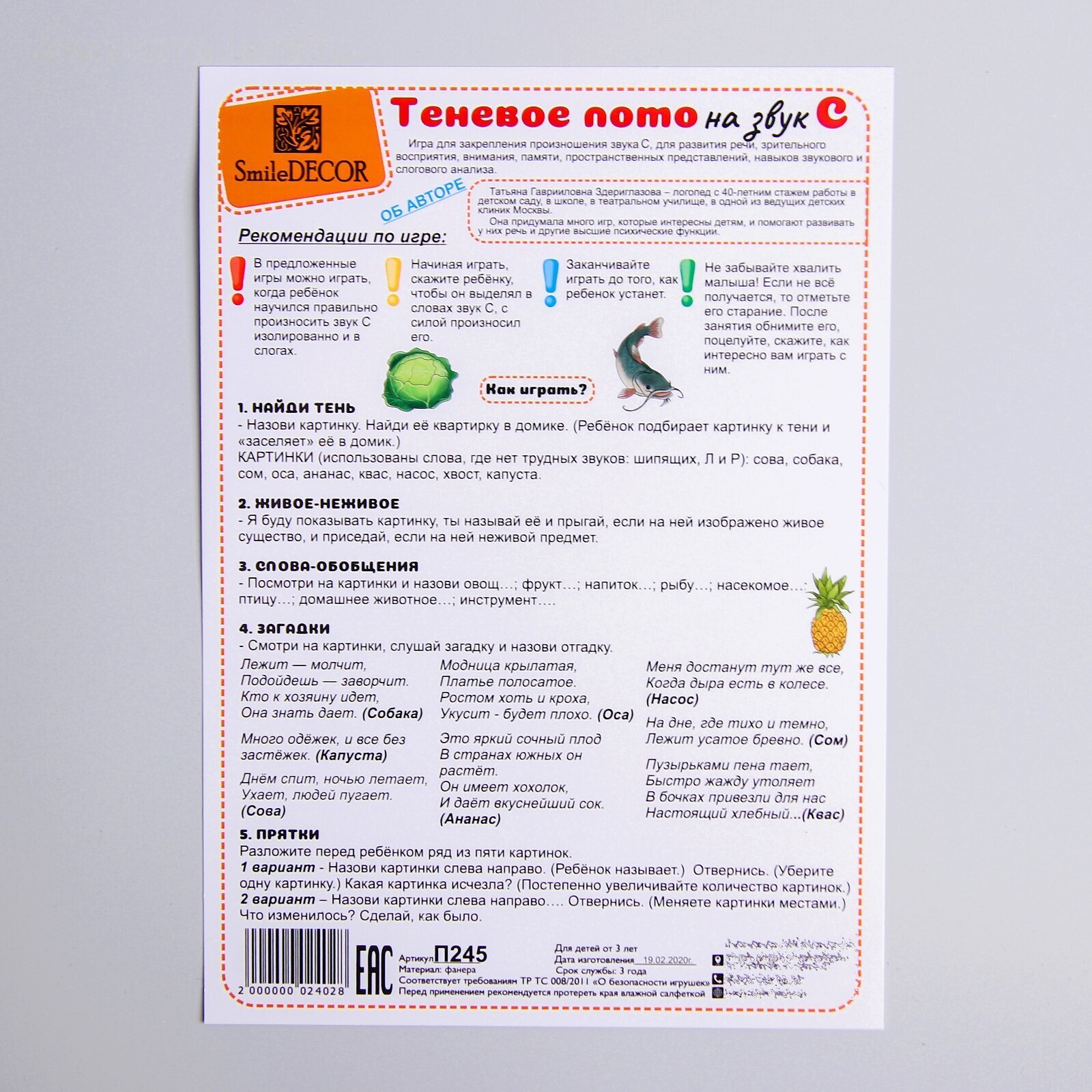 Теневое лото — это игра для закрепления произношения звуков, развития речи, зрительного восприятия, внимания, памяти, пространственных представлений, навыков звукового и слогового анализа.