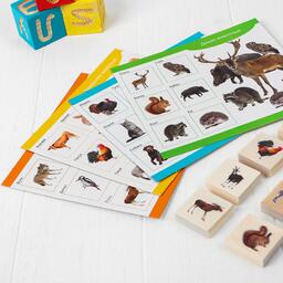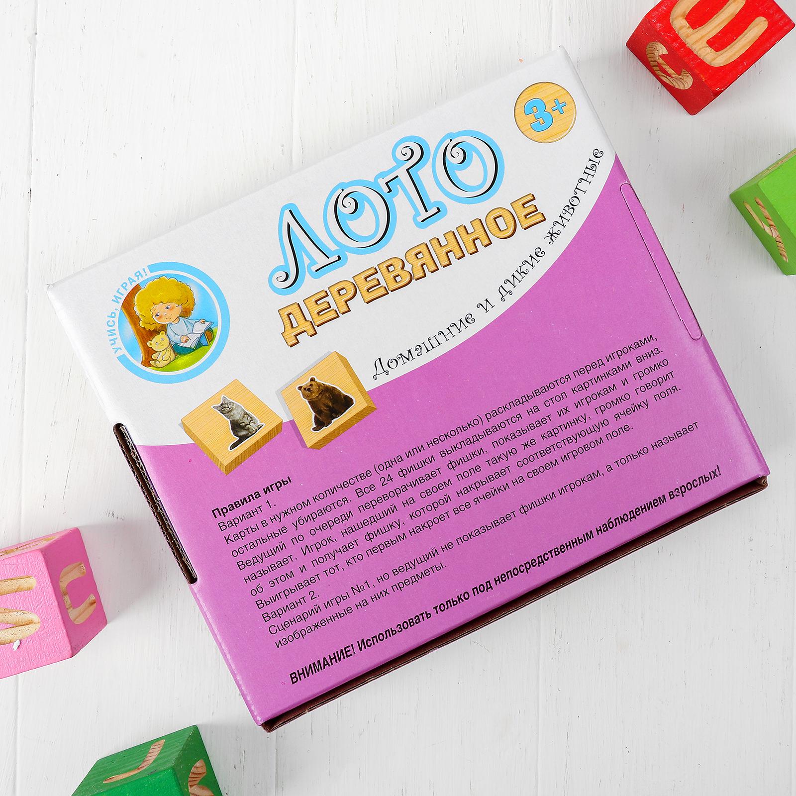 Лото деревянное «Домашние и дикие животные», плашки 24 шт.: 3.2 × 3.2 × 1 см