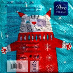 Салфетки бумажные Перышко Prestige 33х33 "Кот Снежок" 3сл 20л.
