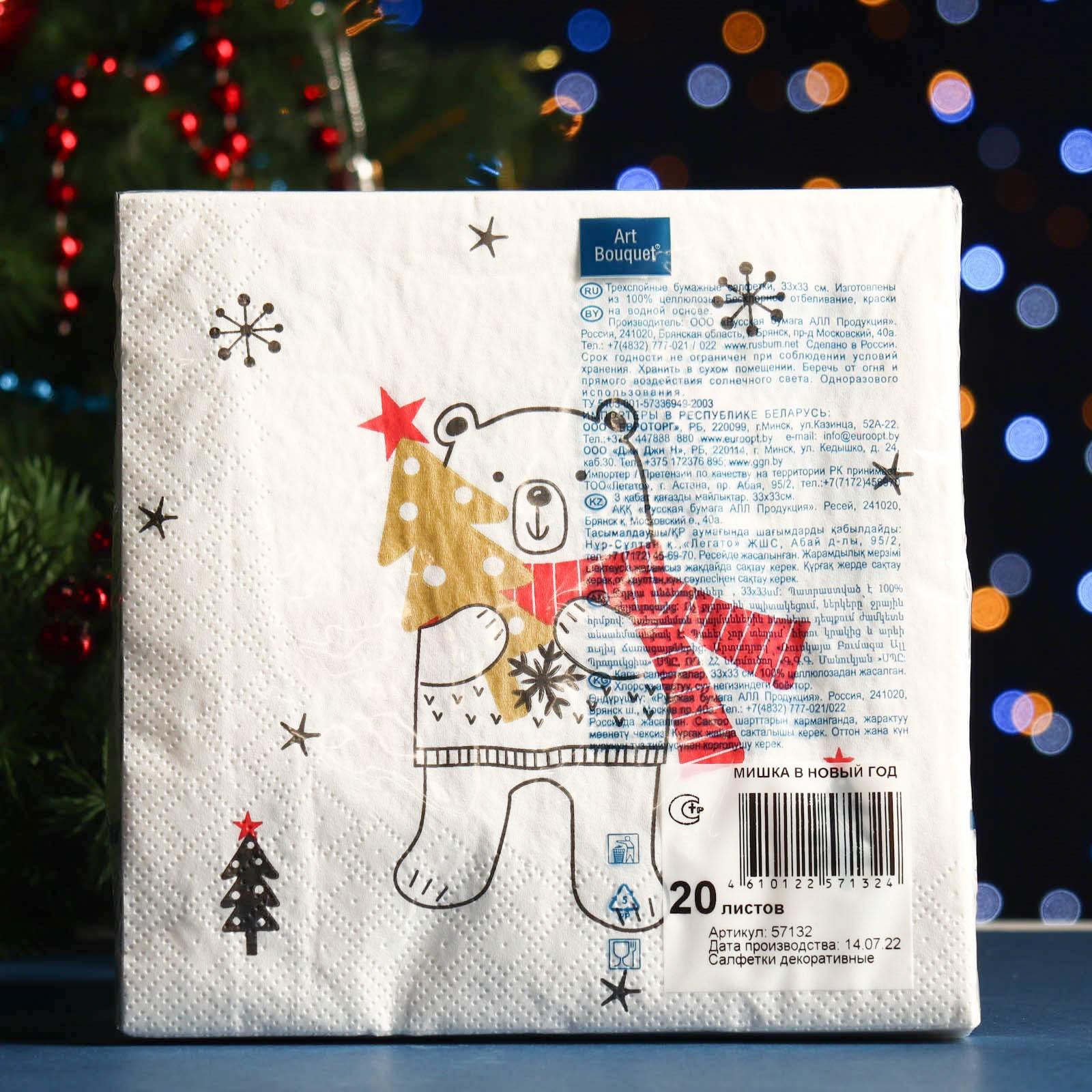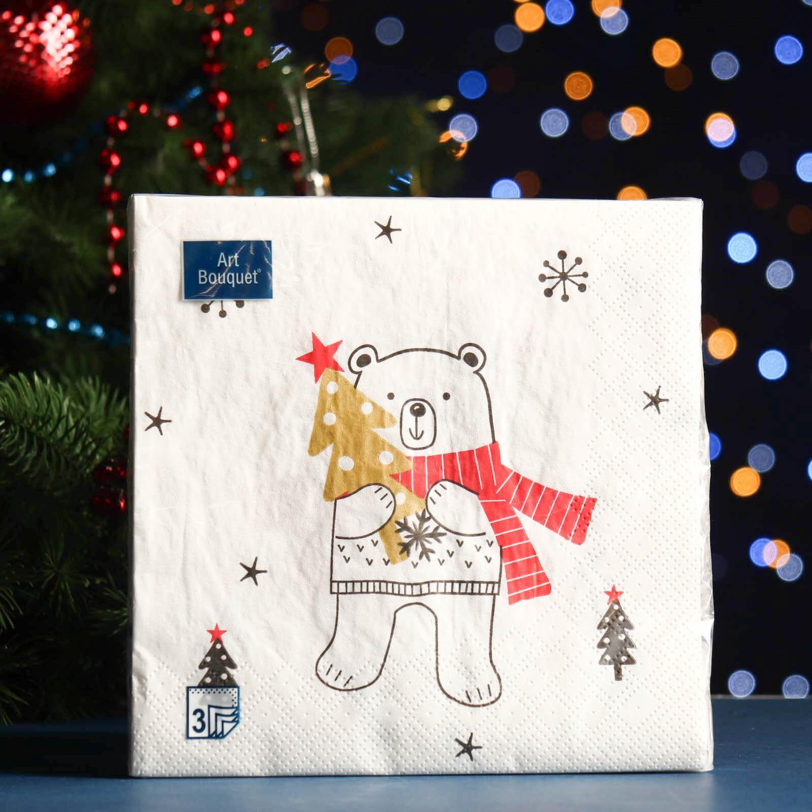 Салфетки бумажные "Art Bouquet" Мишка в новый нод , 3 слоя,33x33, 20 листов