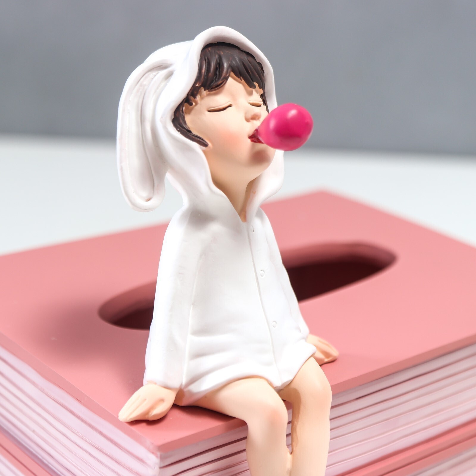 Сувенир полистоун салфетница "Малышка в халате с ушками зайчика, с пузырём" 19,5х16х17,5 см 733415