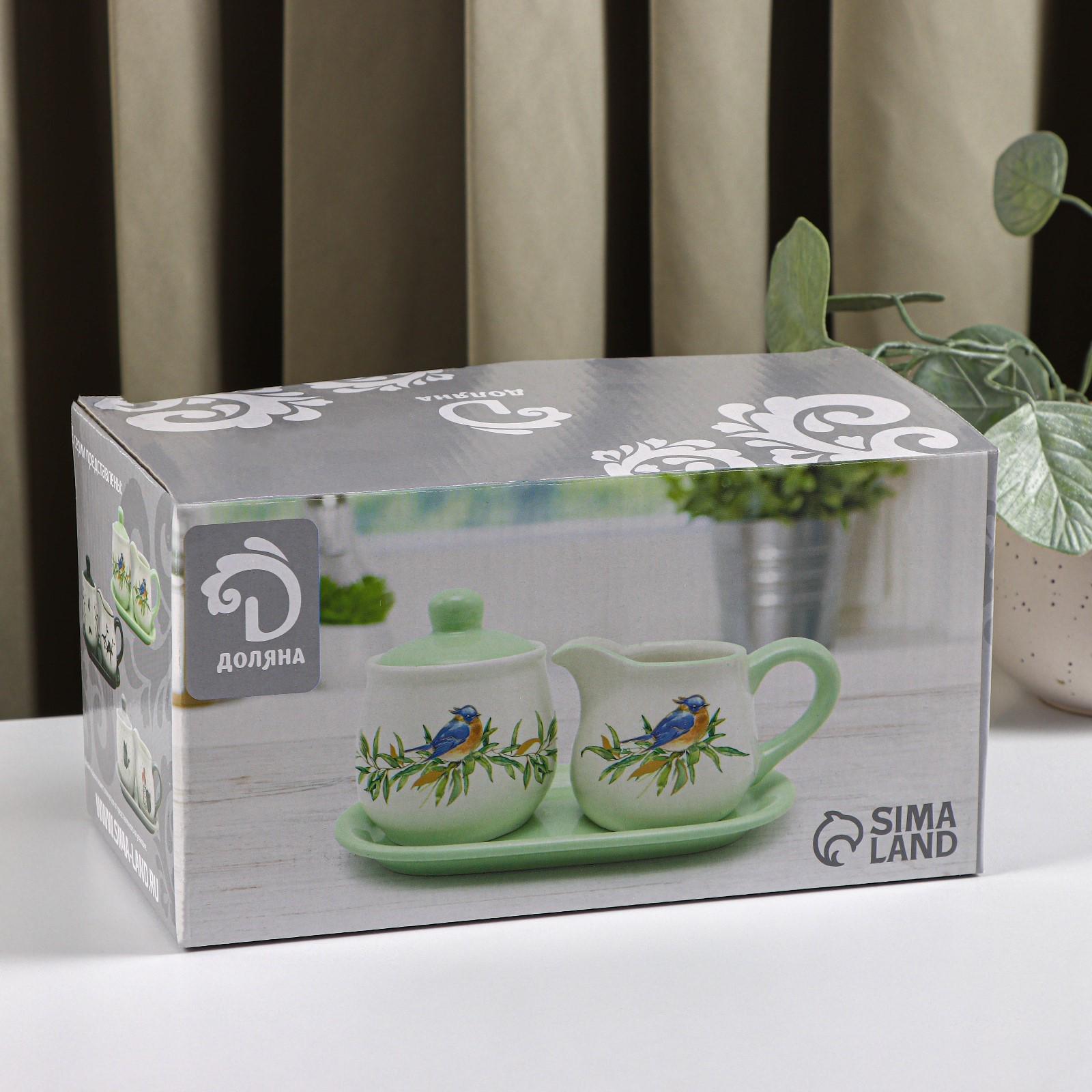 Набор сервировочный Доляна «Уютные коты», 2 предмета: молочник 270 мл, сахарница 310 мл