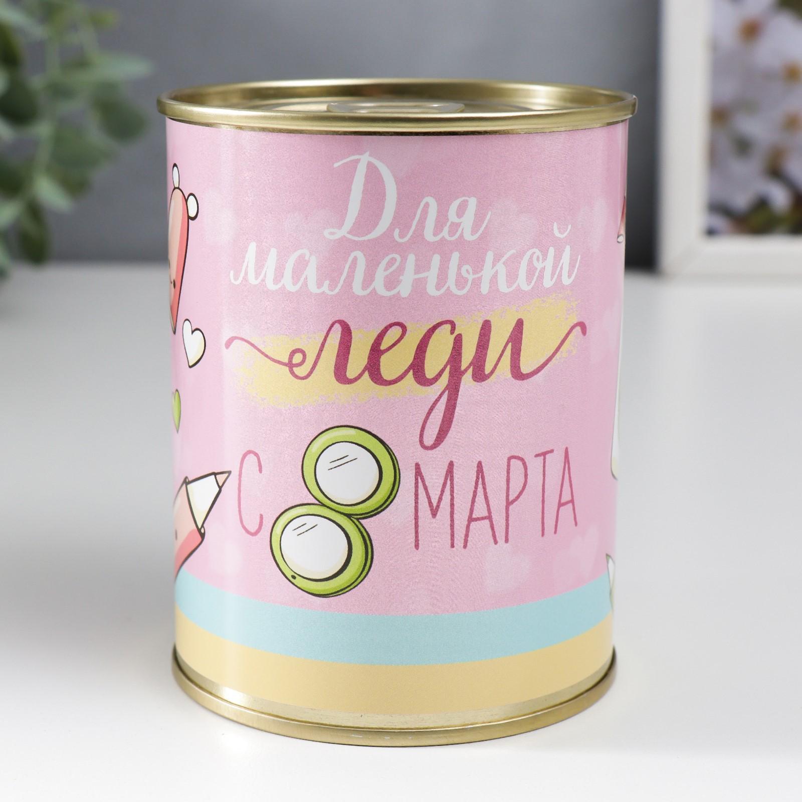 Носки в банке "Для маленькой леди, С 8 Марта!" (внутри носки женские, цвет белый)