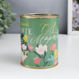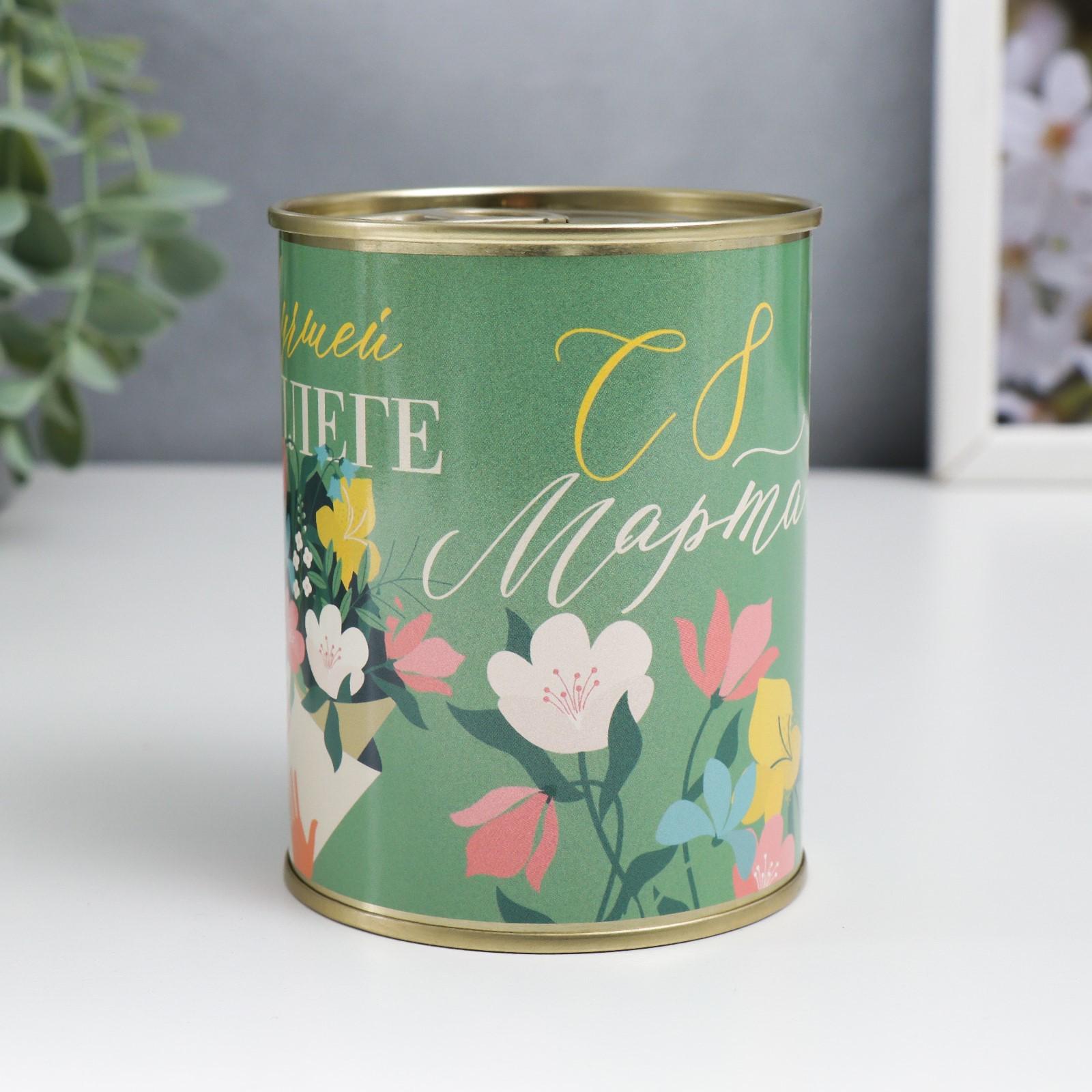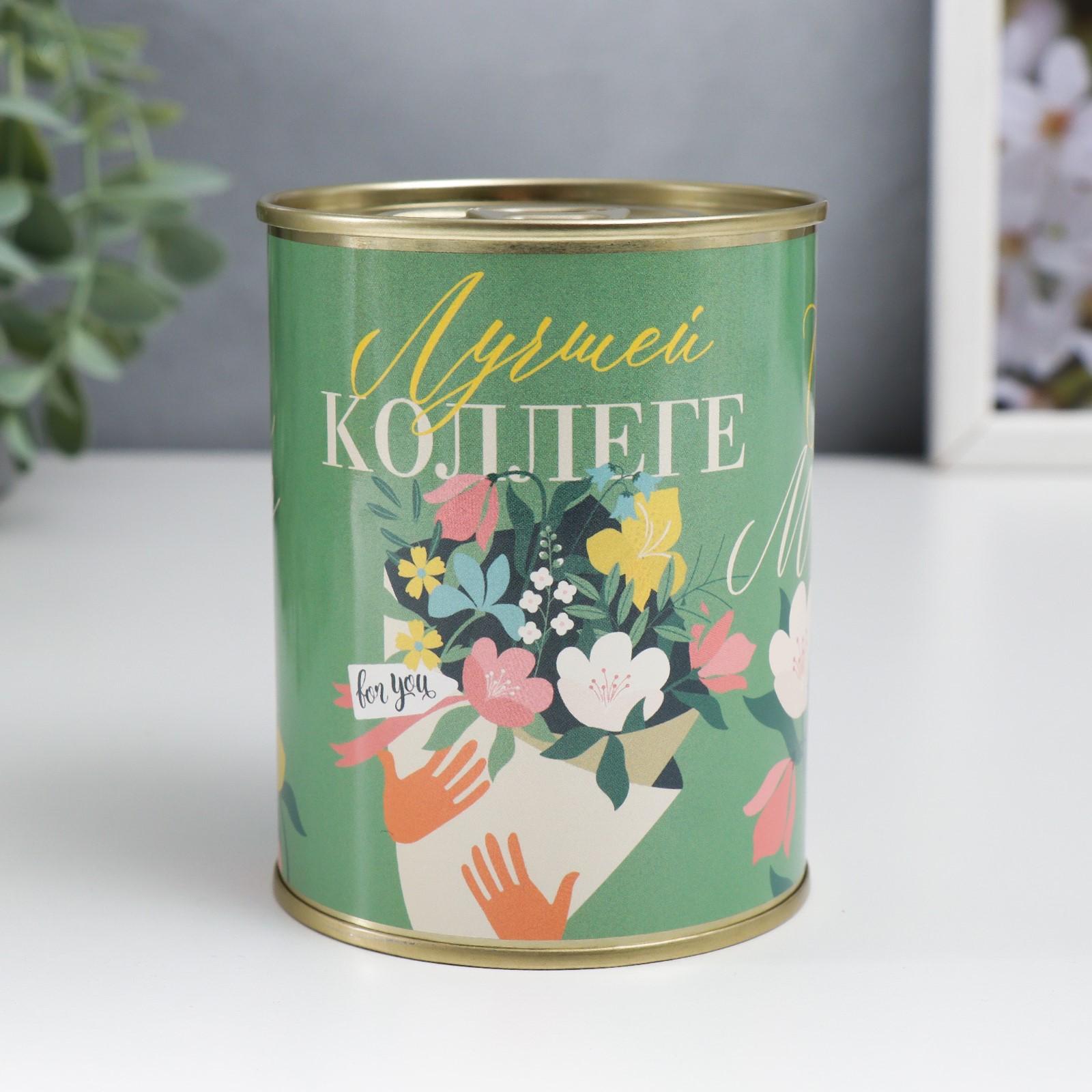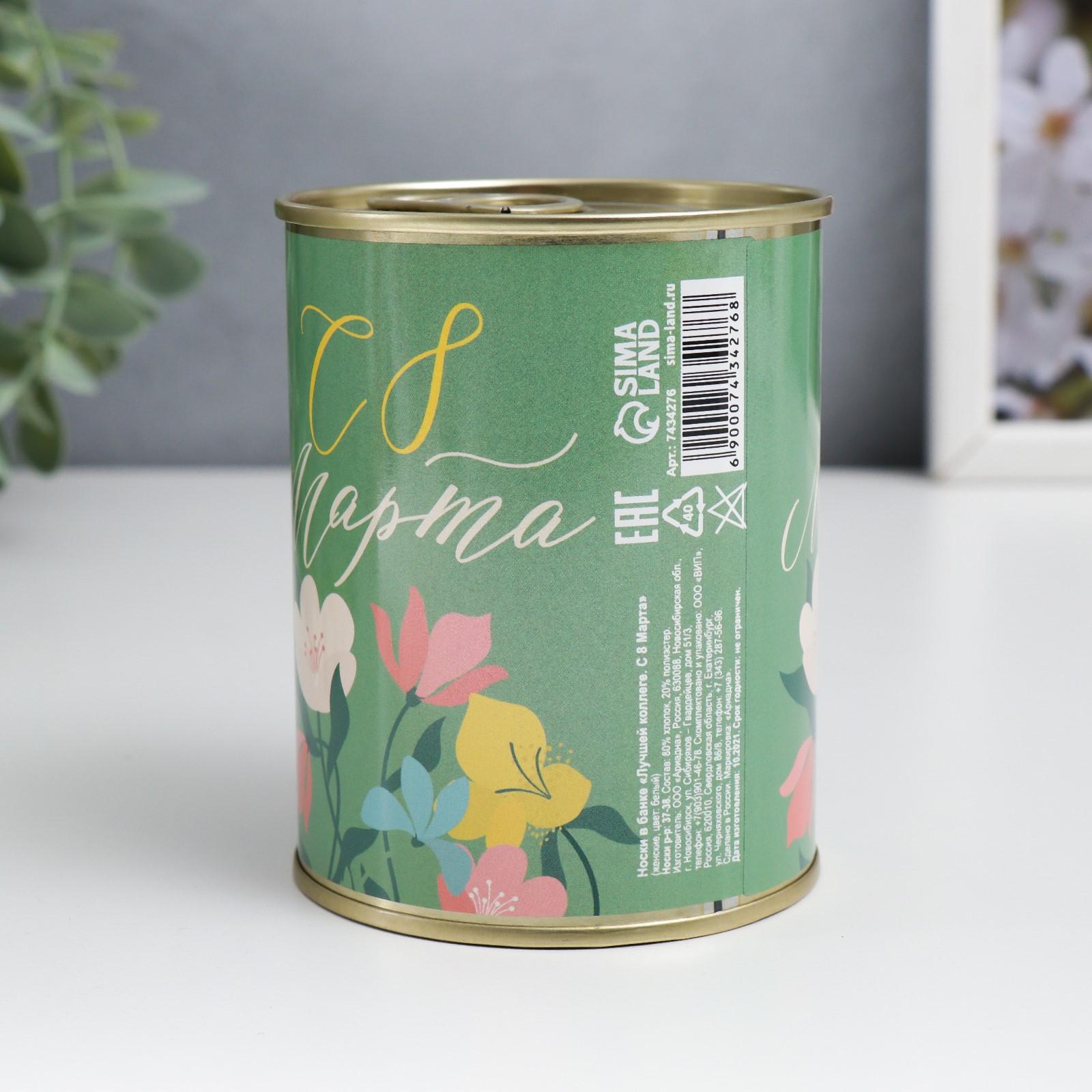 Носки в банке "Лучшей коллеге, С 8 Марта" (внутри носки женские, цвет белый)