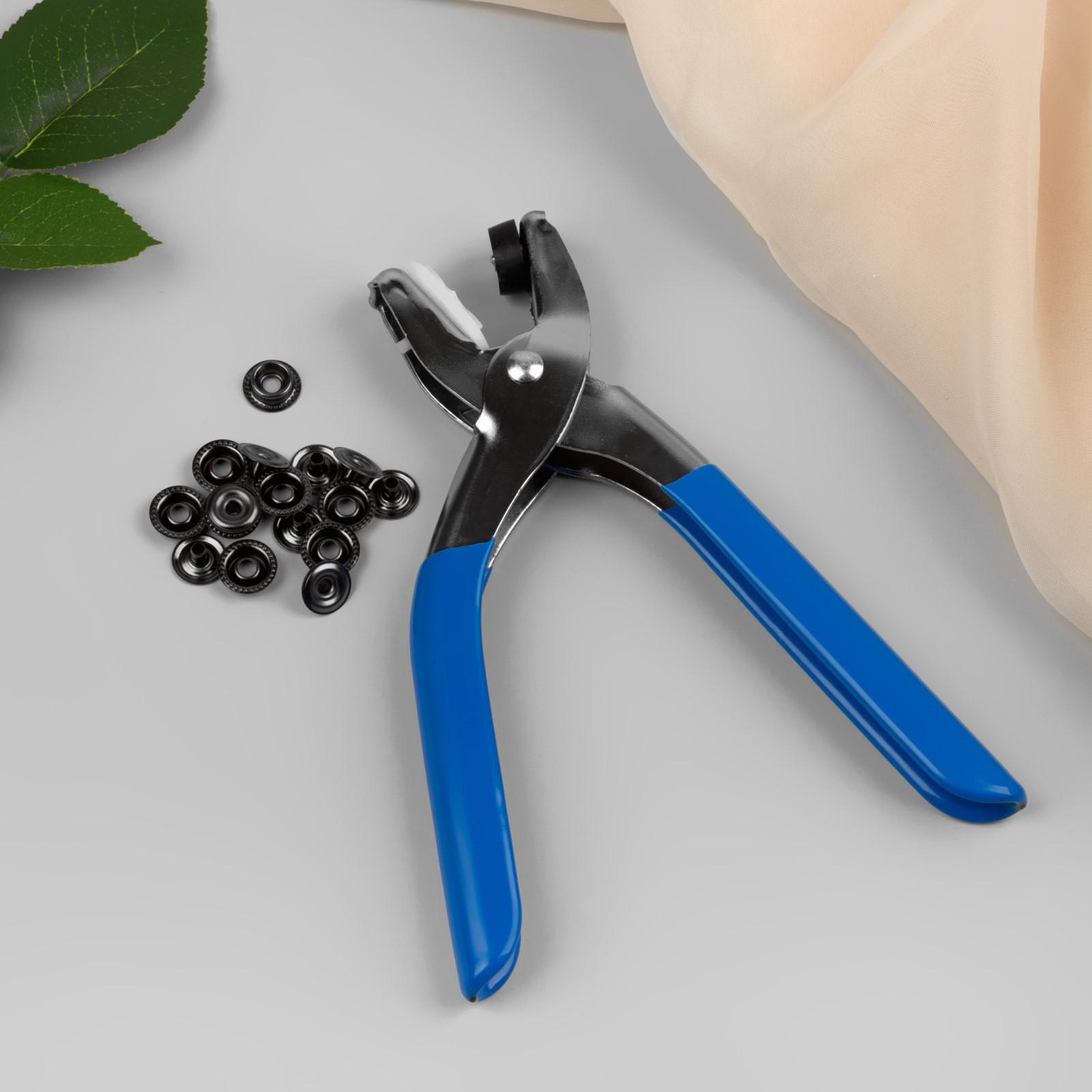 Щипцы для установки металлических кнопок, с кнопками, цвет голубой, HT-3