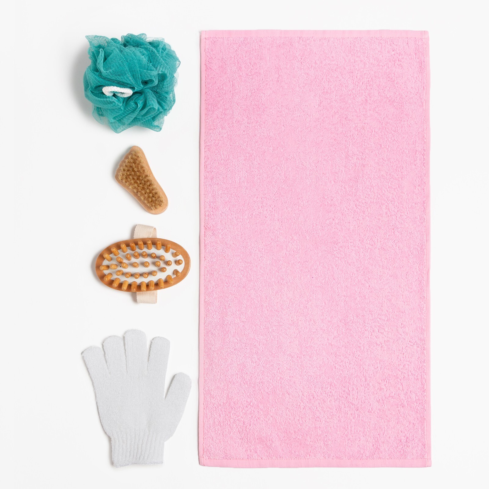 • Составляющие набора Варежка-мочалка, Массажёр, Мочалка, Полотенце, Щётка