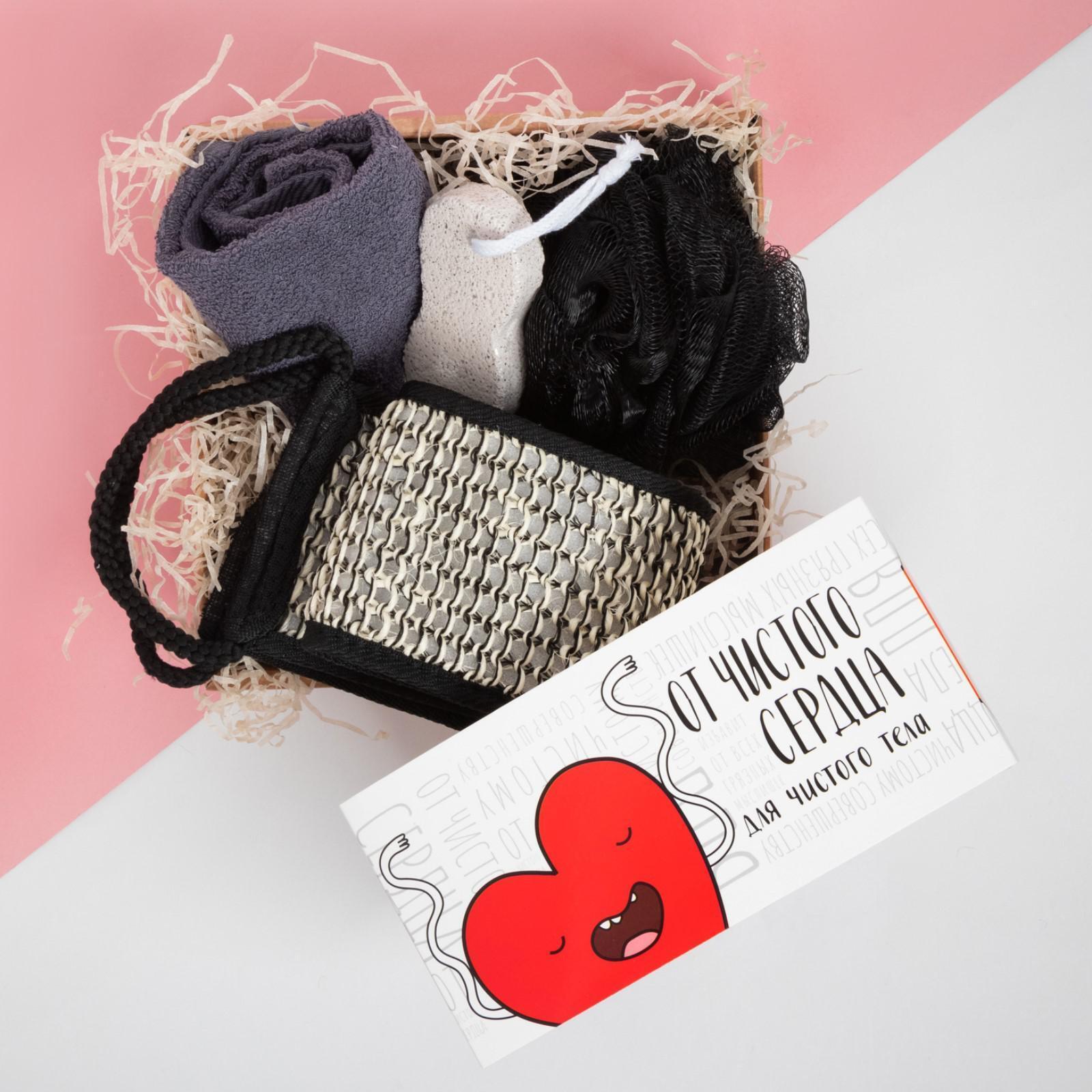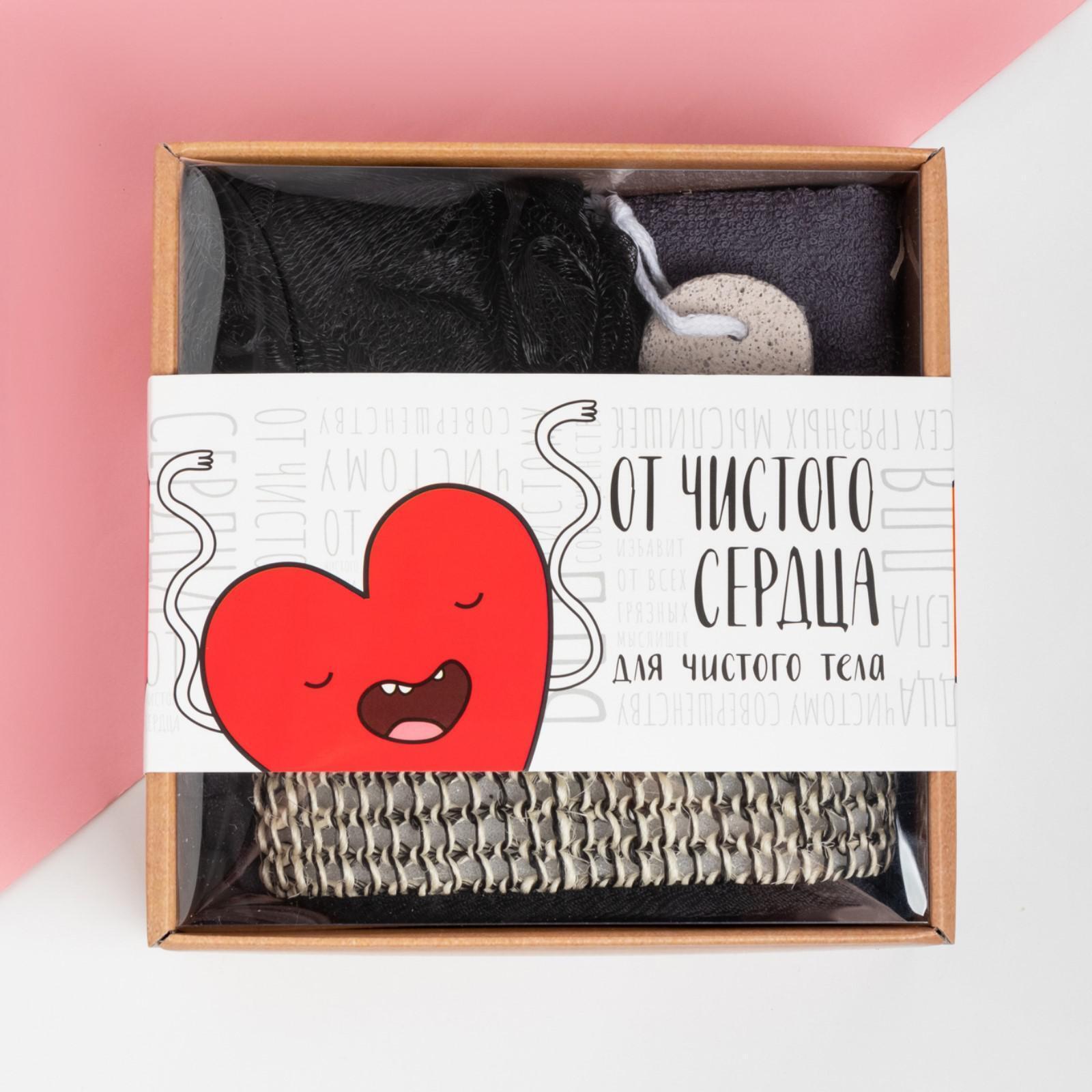 Подарочный набор "От чистого сердца" полотенце 30х60 см и банные аксессуары
