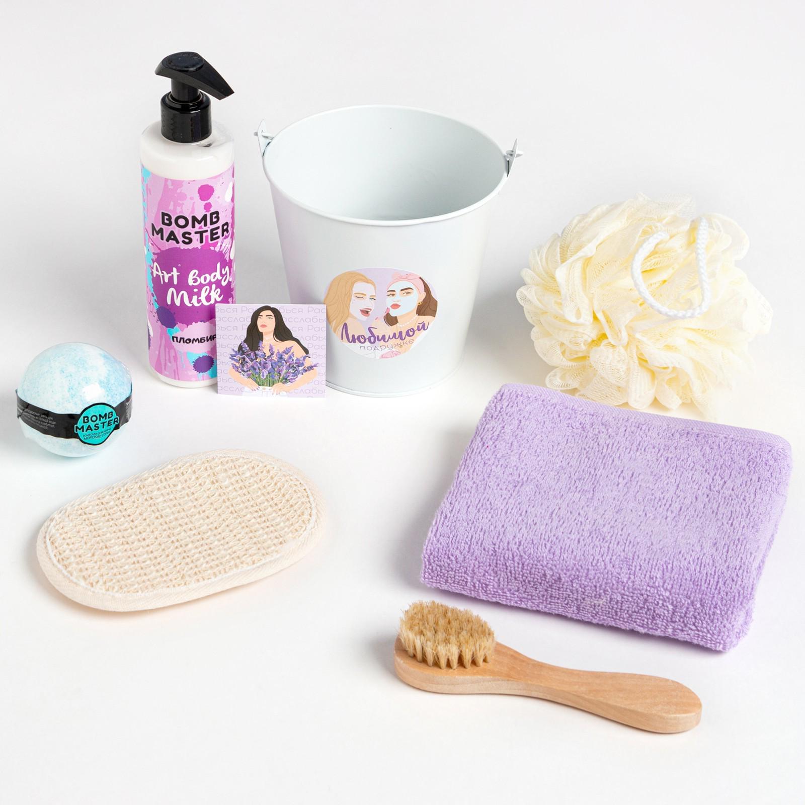 • Составляющие набора Варежка-мочалка, Ведёрко, Молочко для тела, Мочалка, Подставка под горячее, Полотенце, Соль для ванны