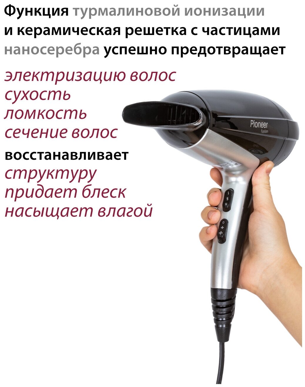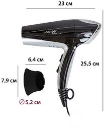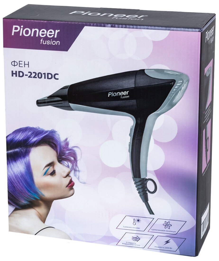 Стильный фен Pioneer HD-2201DC мощностью 2200 Вт с независимыми регуляторами скорости и нагрева идеально подойдет для любого типа волос. Используйте среднюю скорость воздушного потока и умеренную температуру, если у вас тонкие волосы вам необходима деликатная сушка. Максимальная скорость воздушного потока и высокая температура подойдет для густых и длинных волос или если вам необходима быстрая сушка и укладка. Фен оснащен функцией холодный обдув, которая поможет закрепить укладку. В комплекте с феном идет насадка-концентратор.