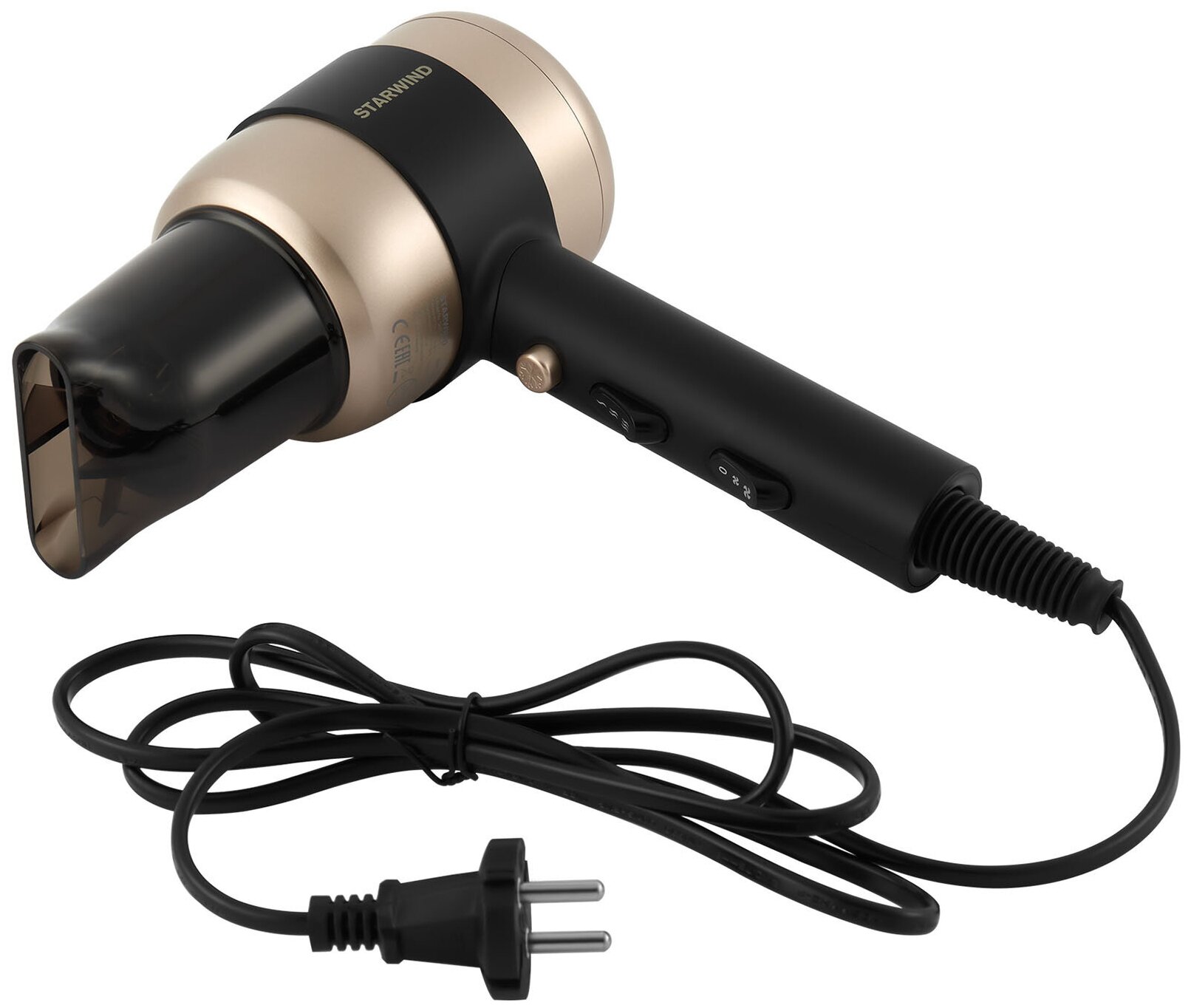 Описание товара Фен Starwind SHD 7072 1800Вт черный/золотистый