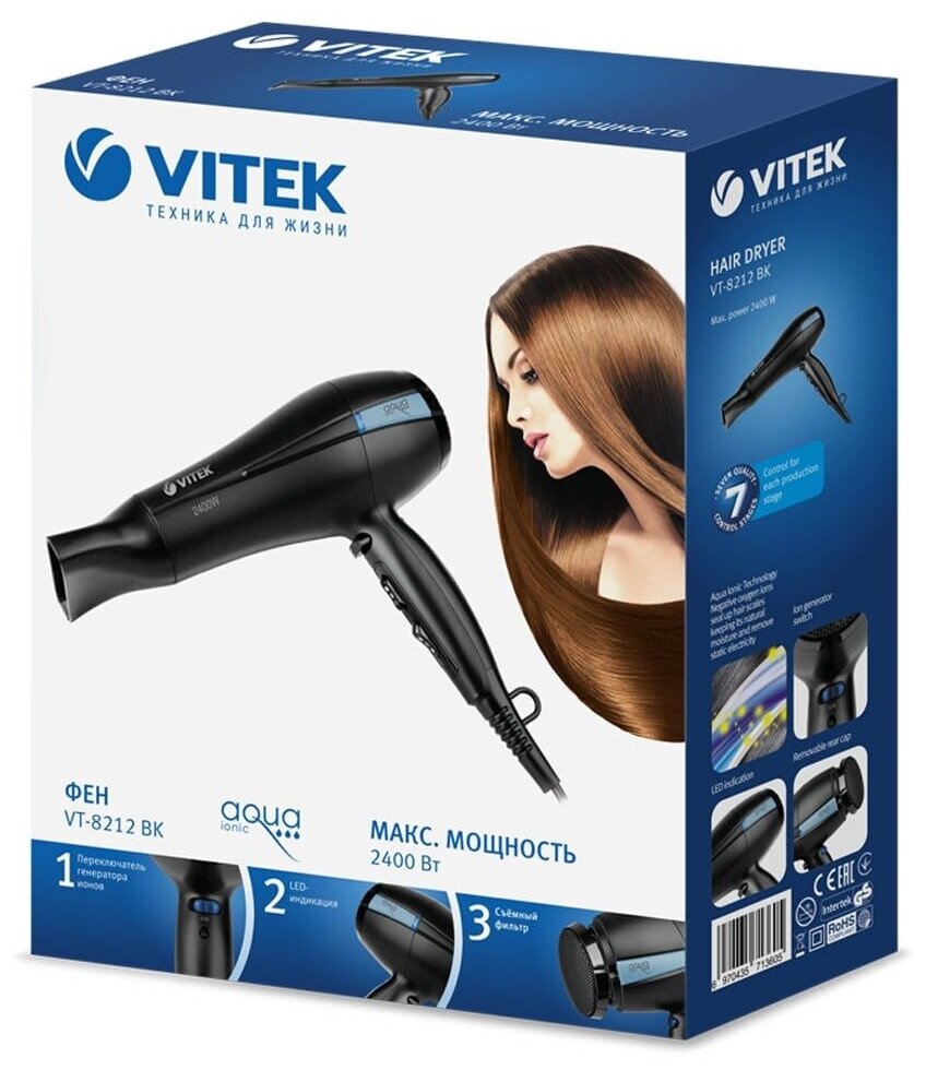 -29% В наличии 1 921 руб. 2 689 руб. Фен Vitek VT-8212 BK