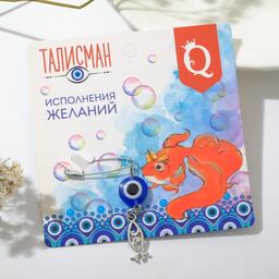 Булавка-талисман "Исполнение желаний", рыбка, 2,2см, цвет бело-синий в серебре