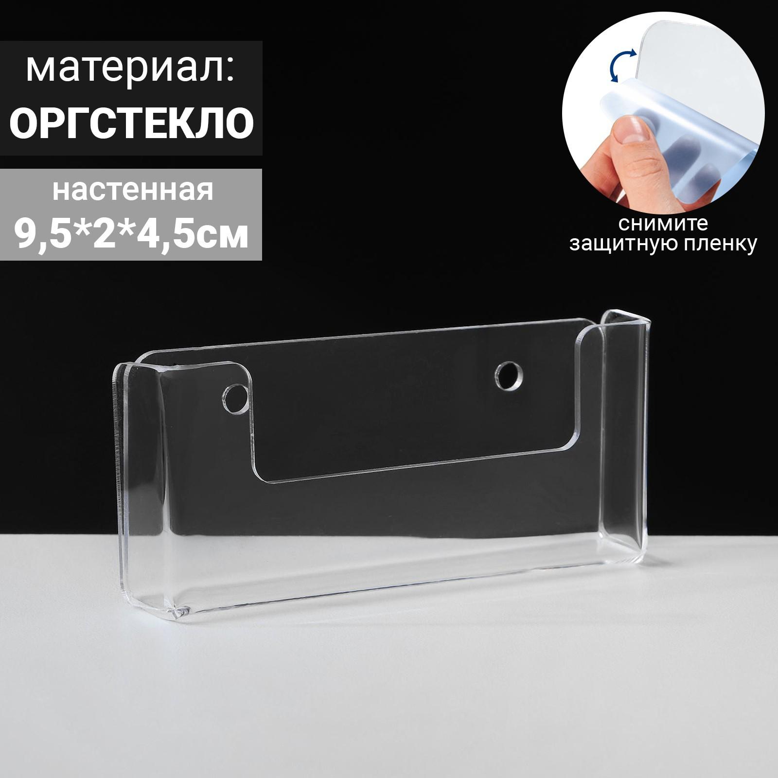 Подставка под визитки настенная 9,5*2*4,5 см, оргстекло 2 мм, В ЗАЩИТНОЙ ПЛЁНКЕ