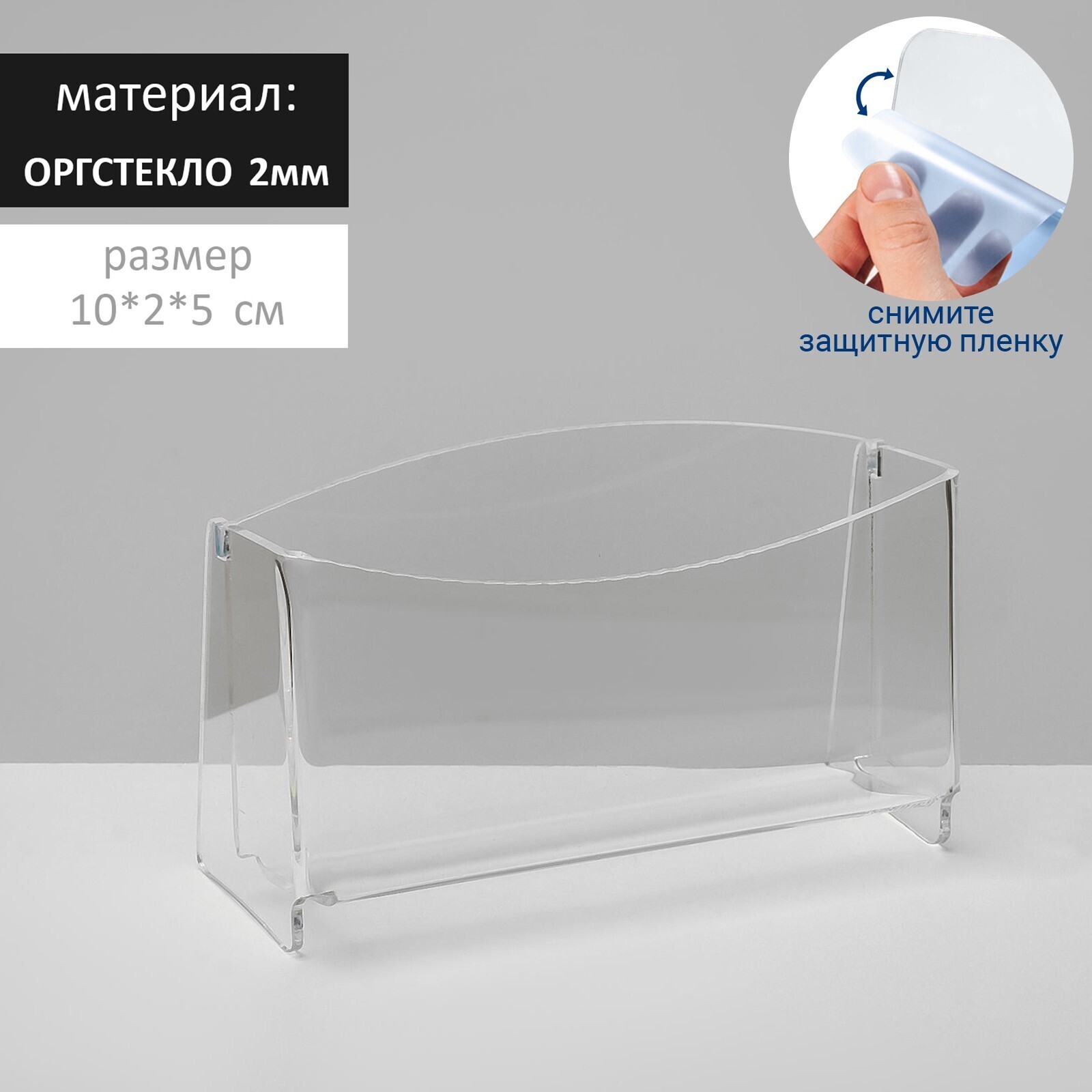 Подставка под визитки настольная 10*2*5 см, оргстекло 2 мм В ЗАЩИТНОЙ ПЛЁНКЕ