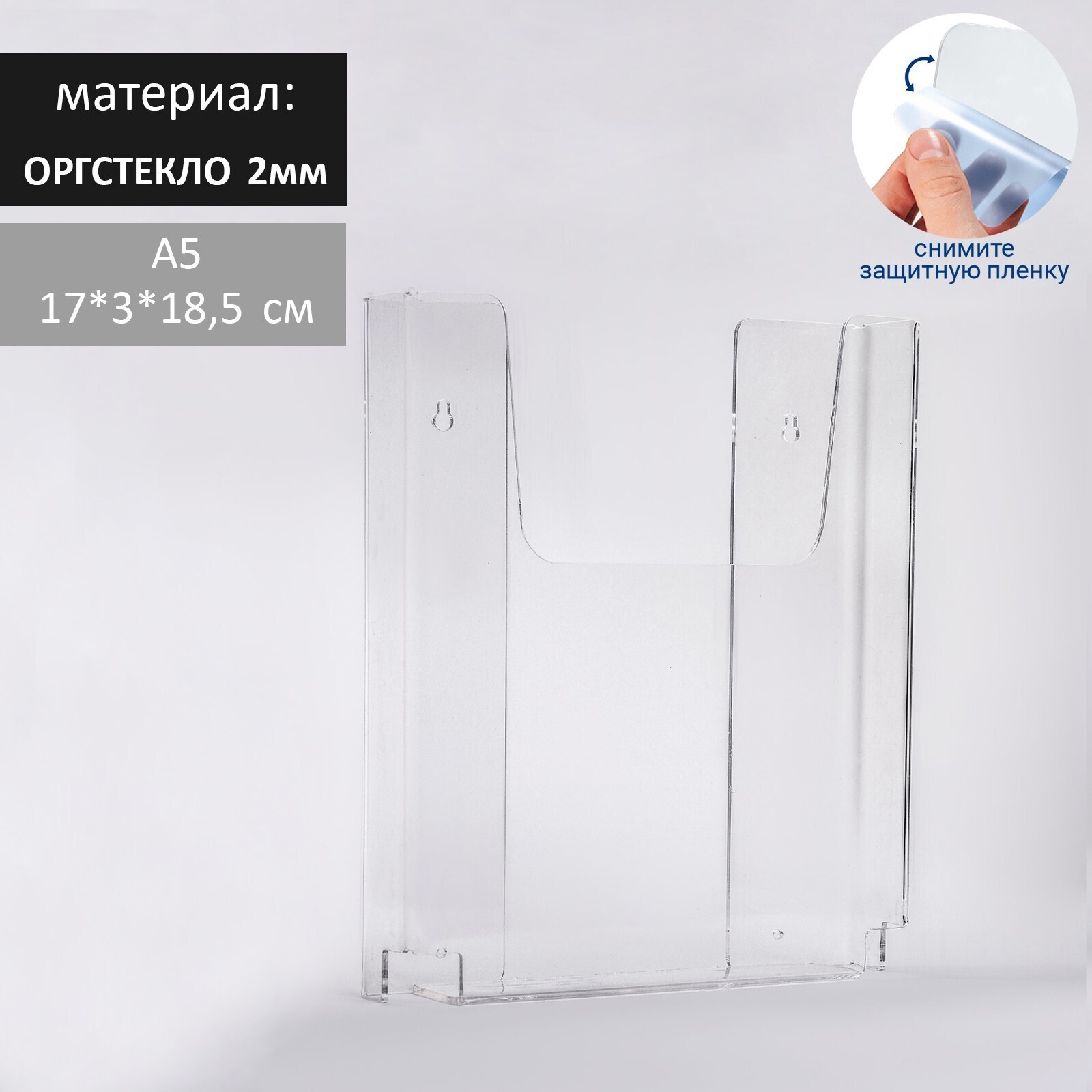 Настенная подставка А5 объемная, 17*3*18,5 см, оргстекло 2 мм, В ЗАЩИТНОЙ ПЛЁНКЕ