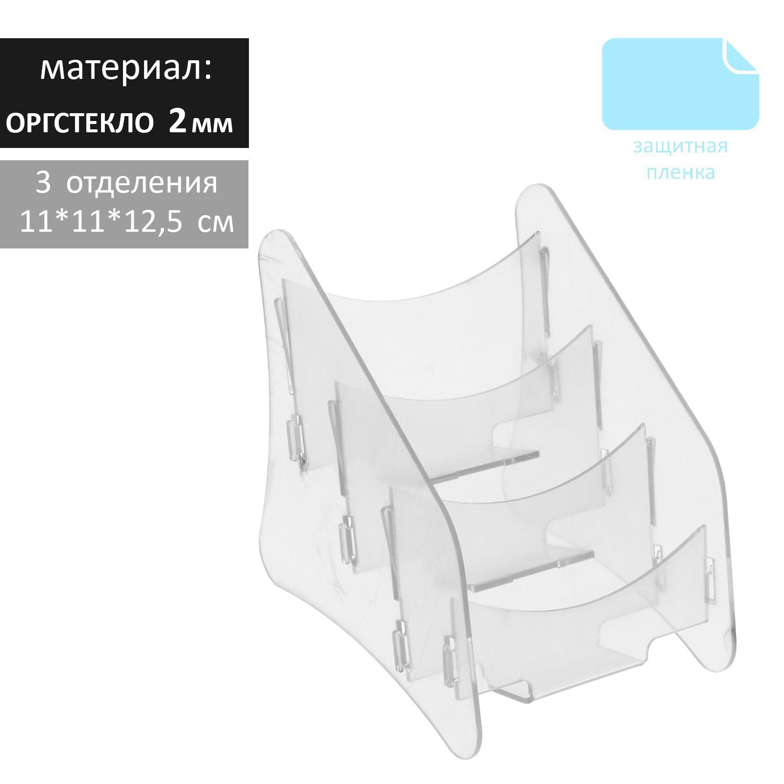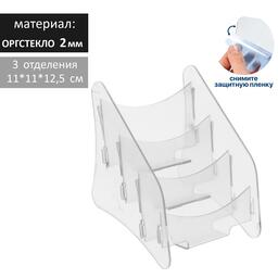 Диспенсер под визитки на 3 отделения 11*11*12,5 см, оргстекло 2 мм В ЗАЩИТНОЙ ПЛЁНКЕ