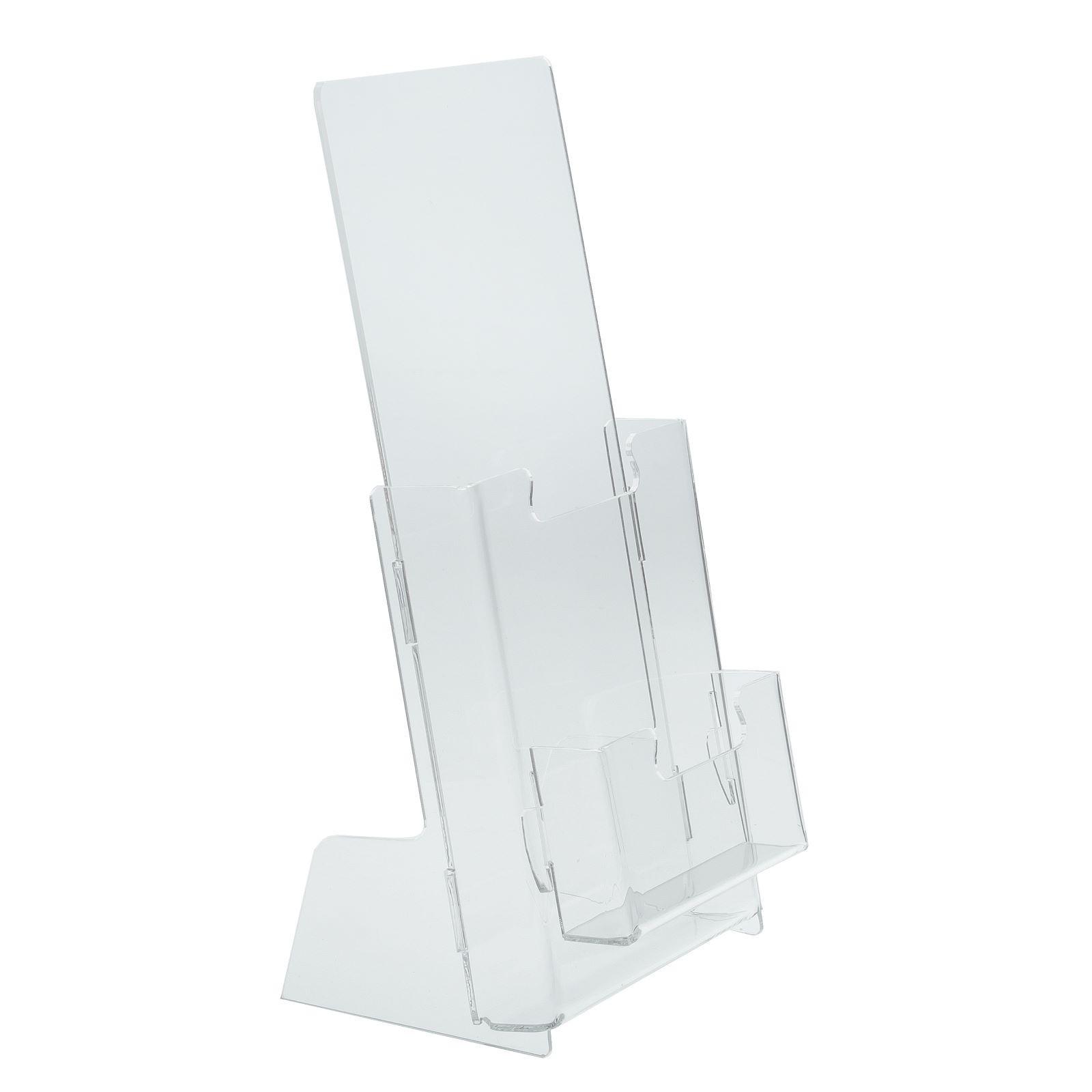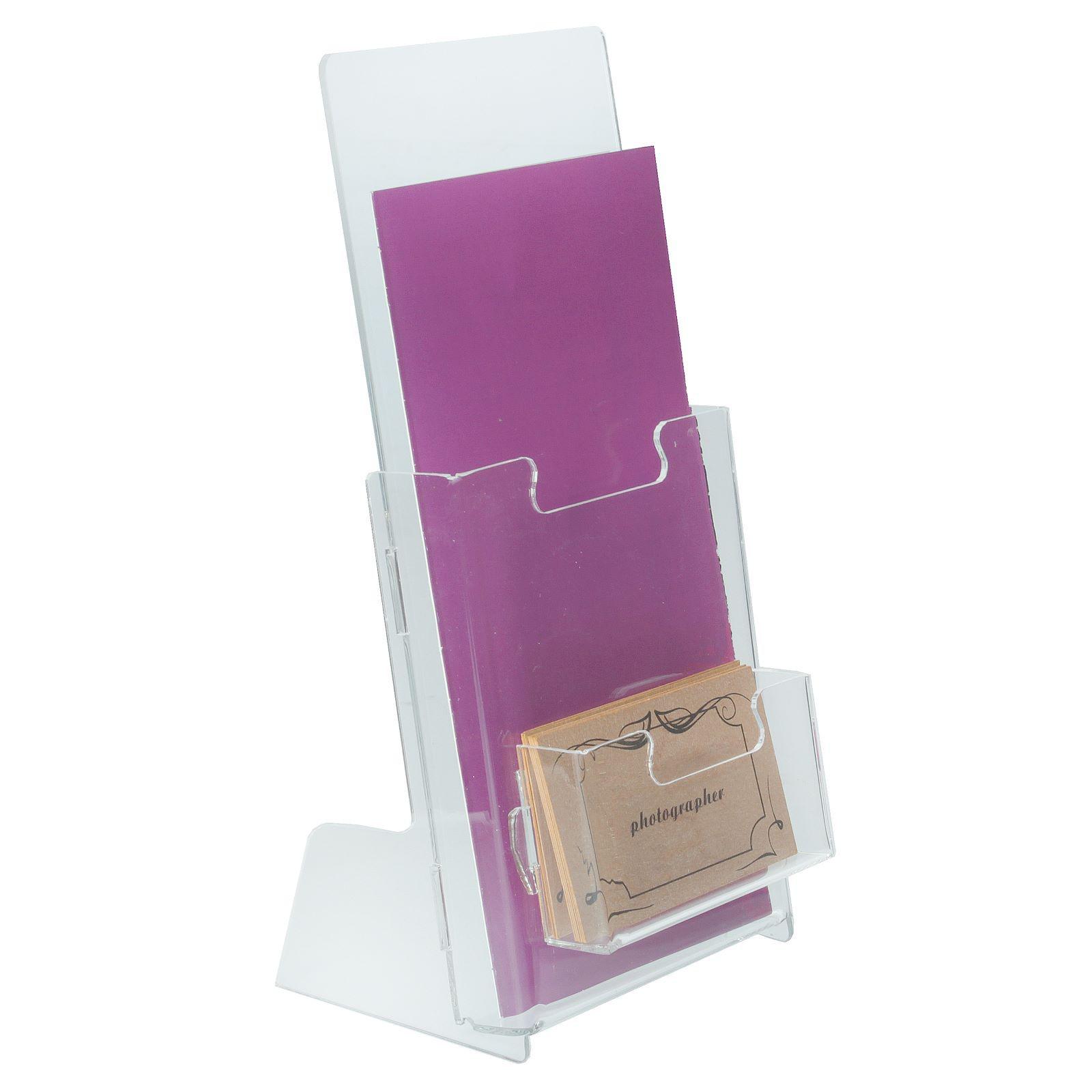 Настольная подставка под еврофлаер с визитницей, 21,5*11,5*7,4 см, оргстек 2 мм В ЗАЩИТНОЙ ПЛЁНКЕ