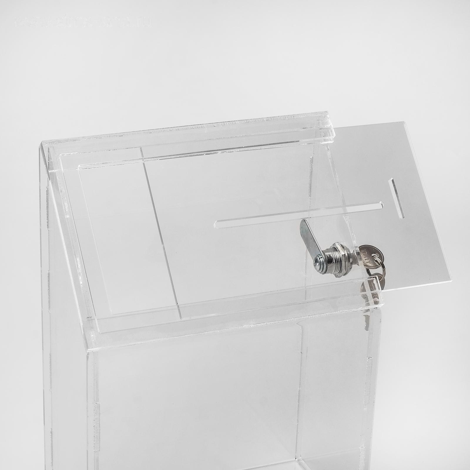 Ящик для сбора денег с врезным замком, оргстекло, В ЗАЩИТНОЙ ПЛЁНКЕ