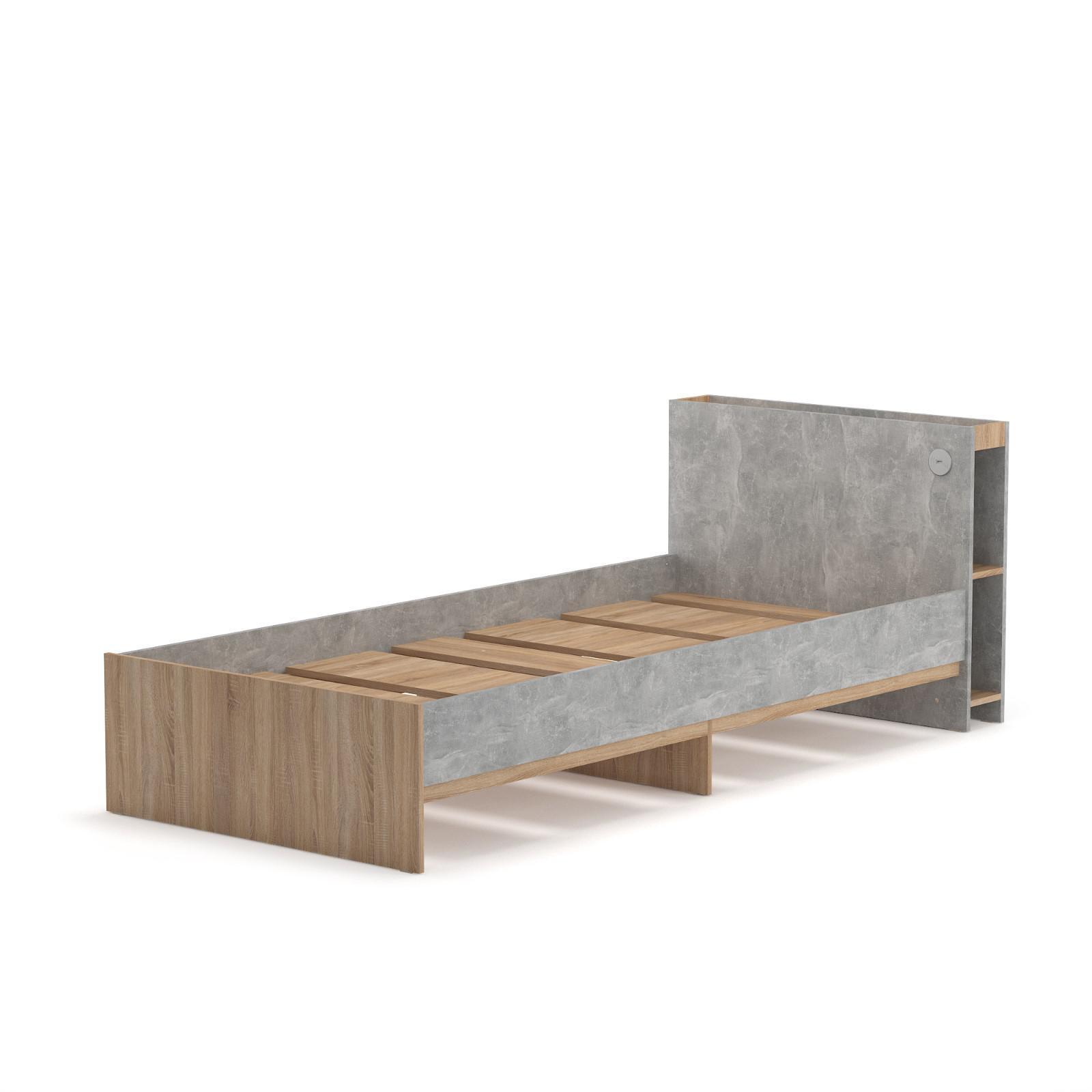 Кровать Фарго с/м 900х2000 без ящиков, 950х2182х760, Дуб сонома/Бетон светлый
