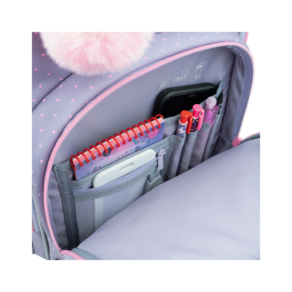 Шкільний рюкзак Kite SP22-706M – трендовий, легенький та ергономічний. Напівкаркасна ортопедична модель для початкової школи виконана з міцного та практичного поліестеру. Модель увібрала в себе все найкраще від каркасних і м'яких. Напівкаркасна конструкція ущільнена з трьох сторін та відмінно тримає форму. Щільні бічні панелі захищають вміст рюкзака від пошкоджень і допомагають дитині підтримувати порядок. М'яка сторона полегшує загальну вагу на 15-20%. Для максимальної зручності – безліч практичних кишень і відділень, які допоможуть оптимально розподілити всі необхідні предмети і розумно організувати простір. За свої ортопедичні властивості модель отримала сертифікат німецького Інституту Здоров'я та Ергономіки IGR. Рекомендована для дітей зростом 130-145 см (6-10 років). Чарівний дизайн з милим кошенятком в ліцензії Studio Pets надихатиме вчитися із задоволенням. Матеріал: поліестер. Текстиль та блискавки успішно пройшли випробування на зносостійкість і на розрив. Тканина відрізняється стійкістю до вигоряння, довго зберігає первинний вигляд, а блискавки працюють легко і плавно.