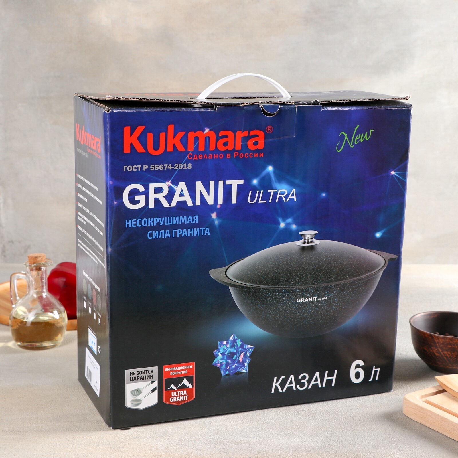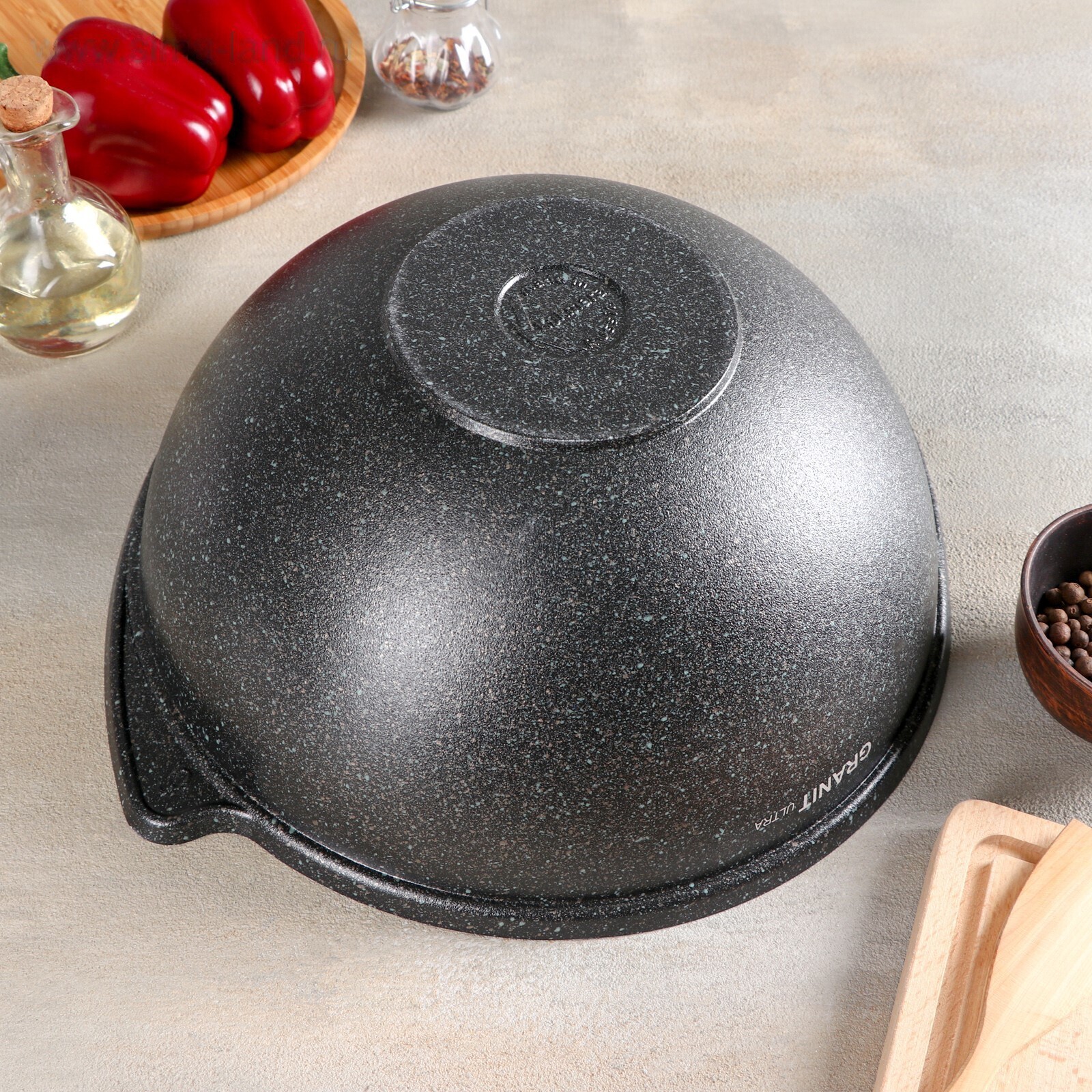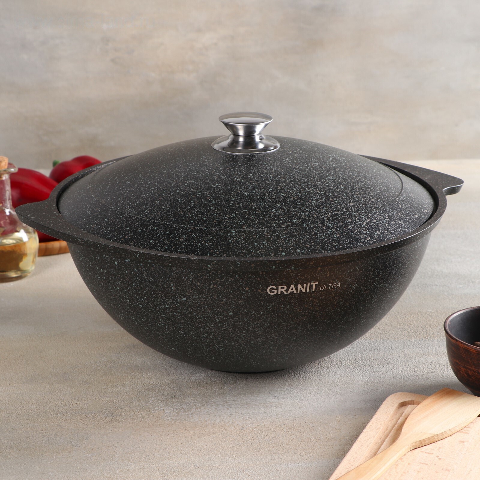 Ultra granit — это инновационное, невероятно прочное покрытие, усиленное сверхтвёрдыми минералами нового поколения, близкими по твёрдости алмазу. Его прочность позволяет использовать даже металлические кухонные принадлежности без риска повредить поверхность. Покрытие Ultra granit продлевает срок службы посуды более чем в 7 раз!