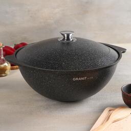 Казан для плова Grаnit ultrа, 6 л, алюминиевая крышка, литые ручки, антипригарное покрытие, цвет чёрный