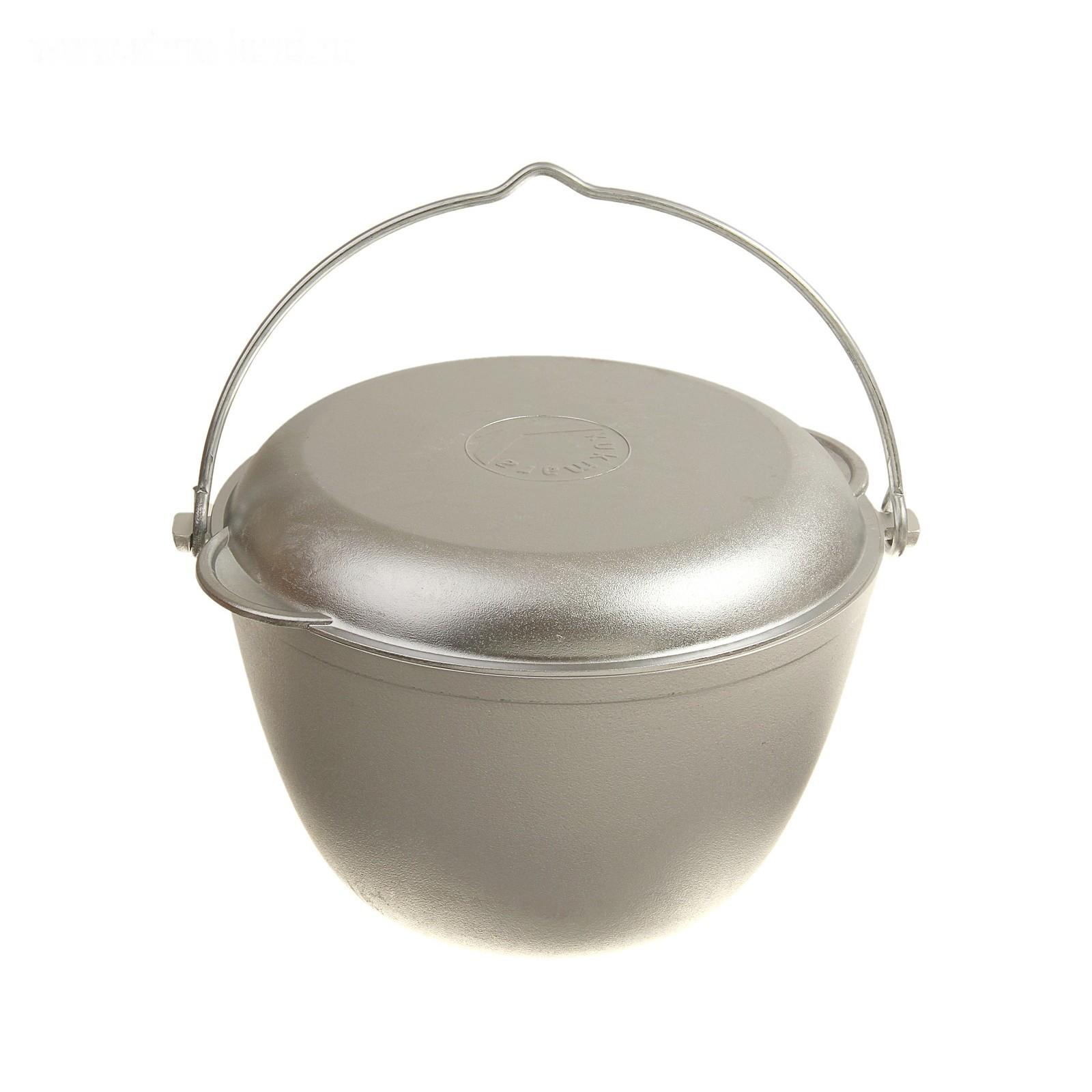 Казан походный, 4 л, крышка-сковорода, цвет серебряный