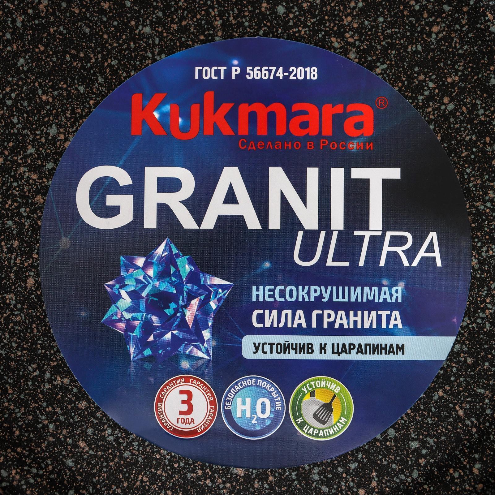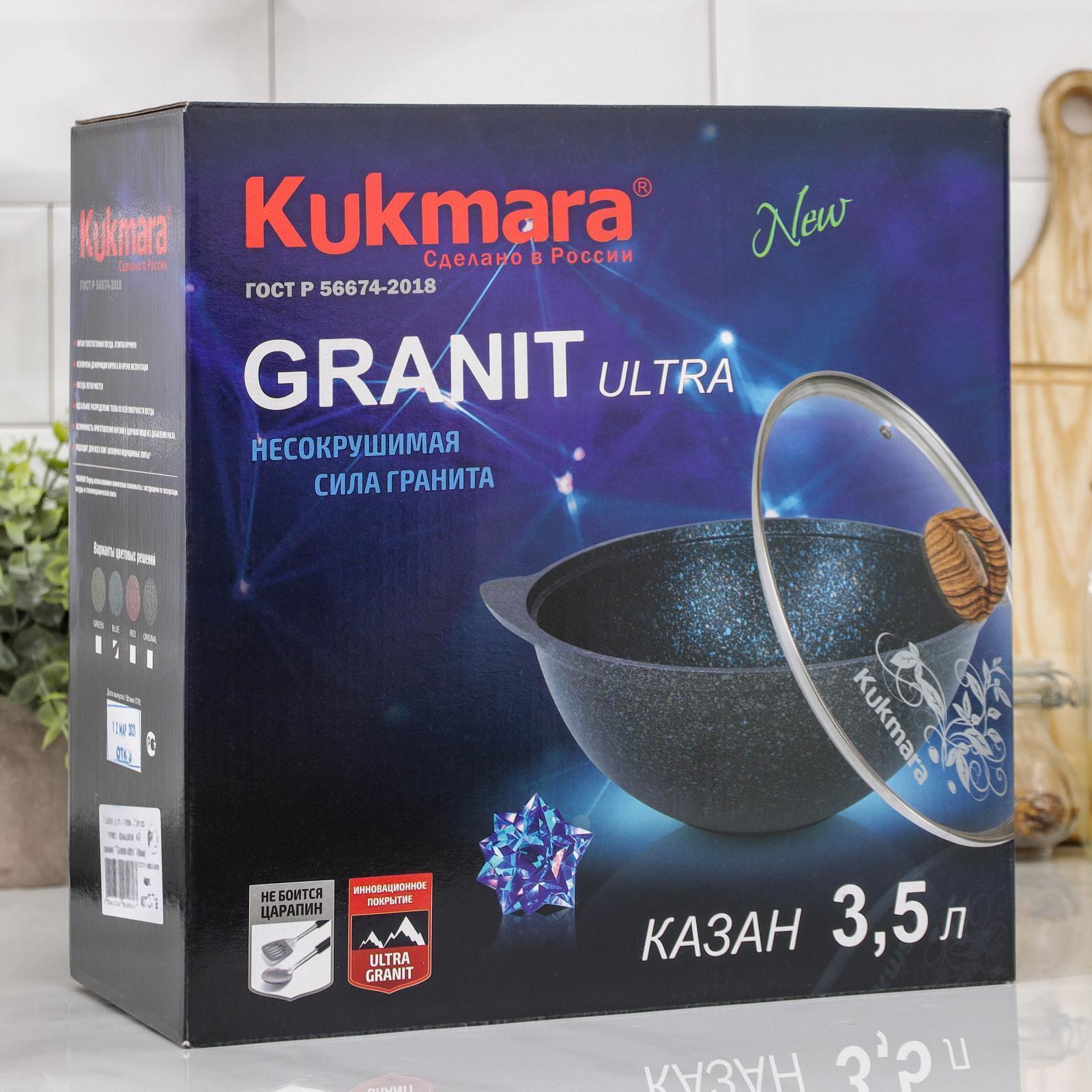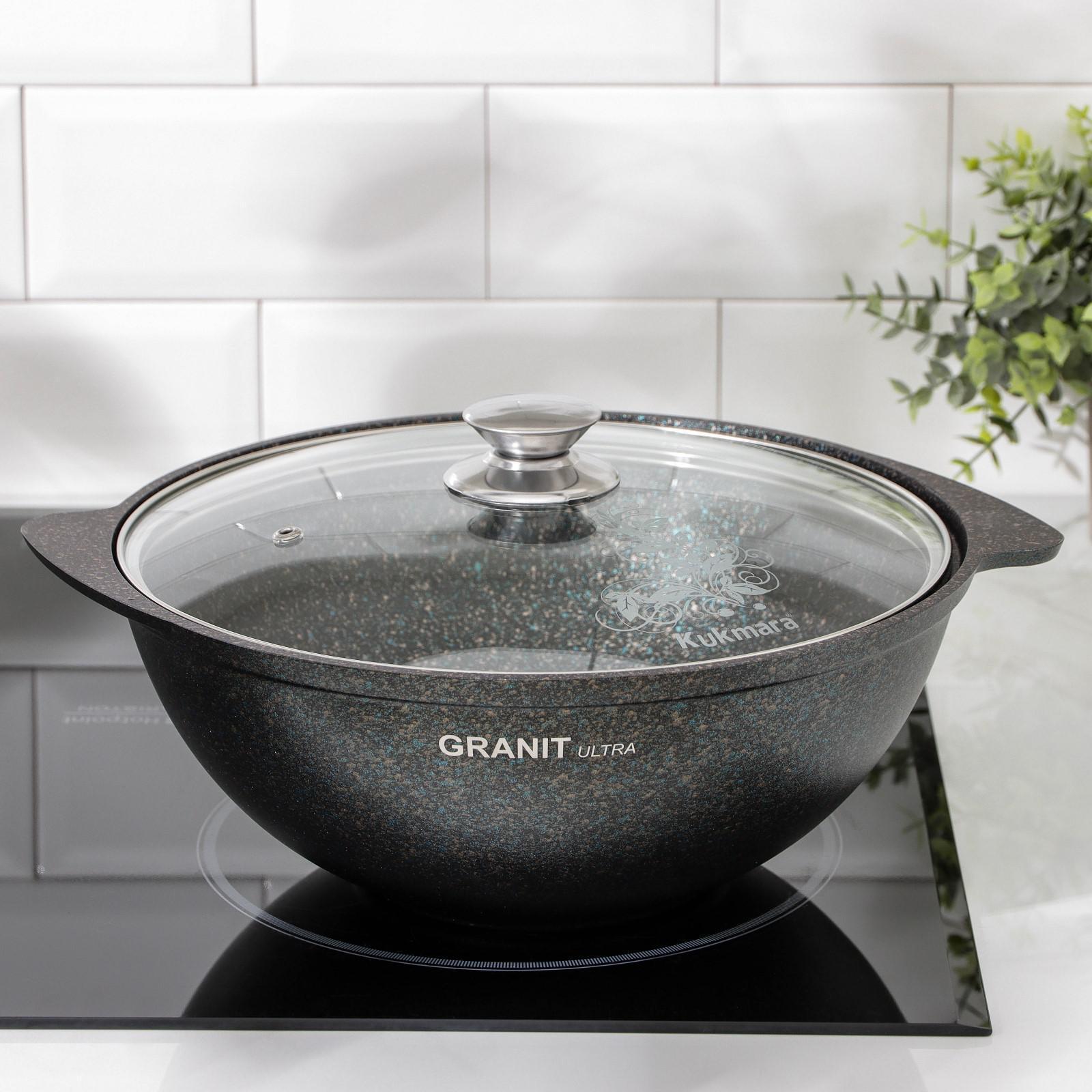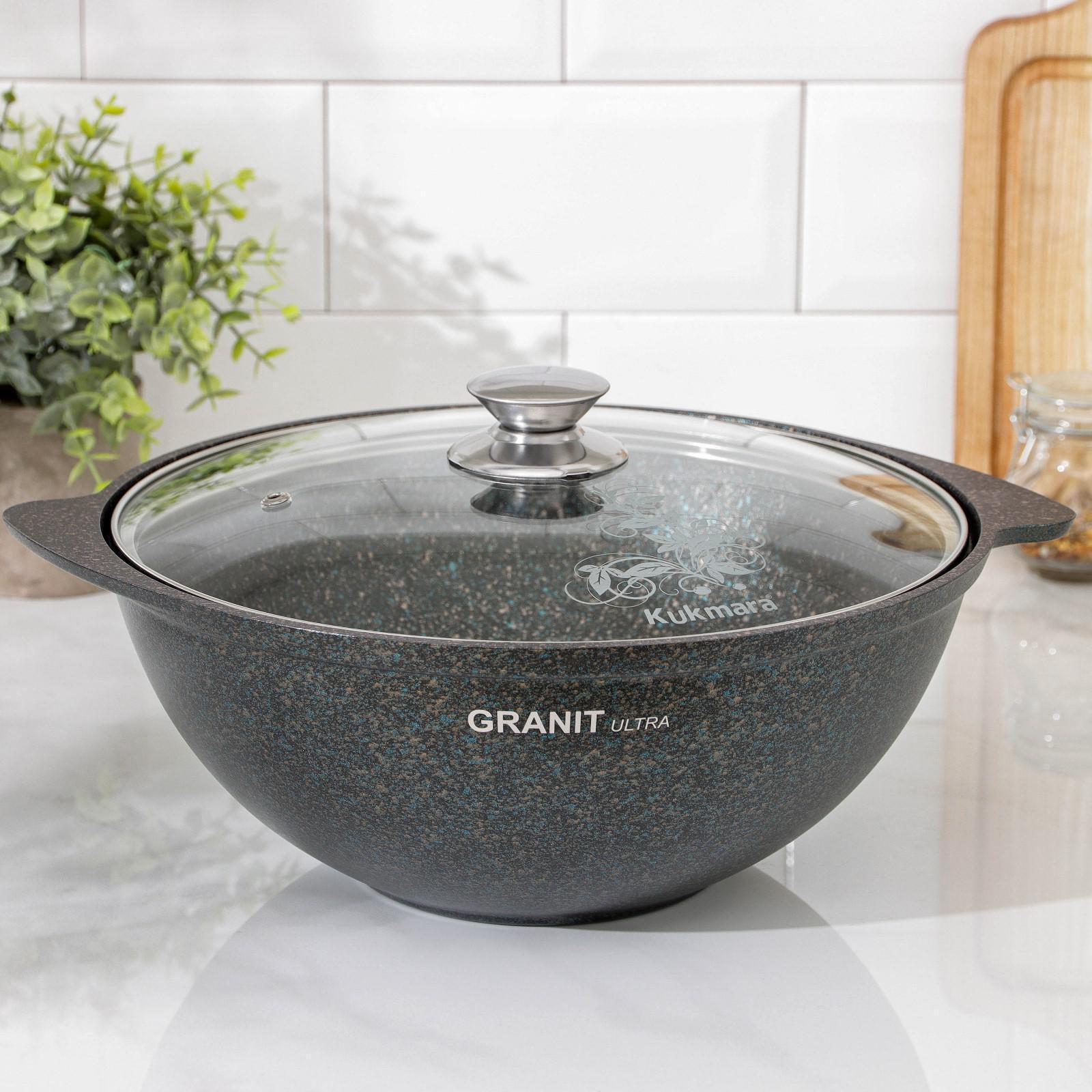 Казан для плова Kukmara сделана из литого алюминия и имеет уникальное ультрапрочное антипригарное покрытие Ultra granit.