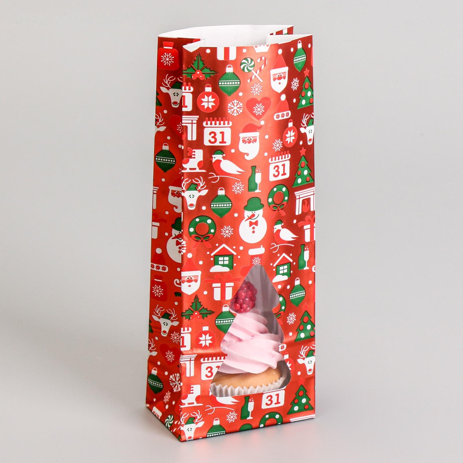 Пакет бумажный фасовочный "Новогодний с окном", 10 х 6 х 26 см