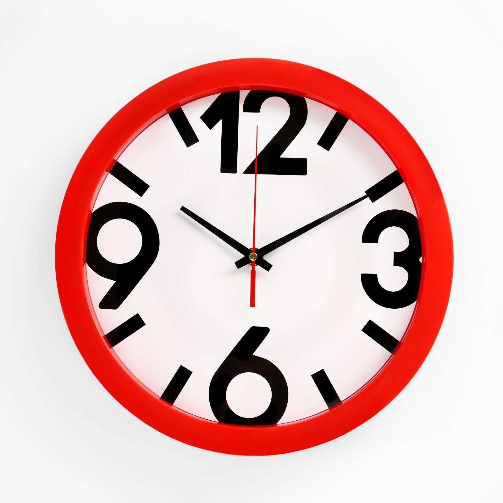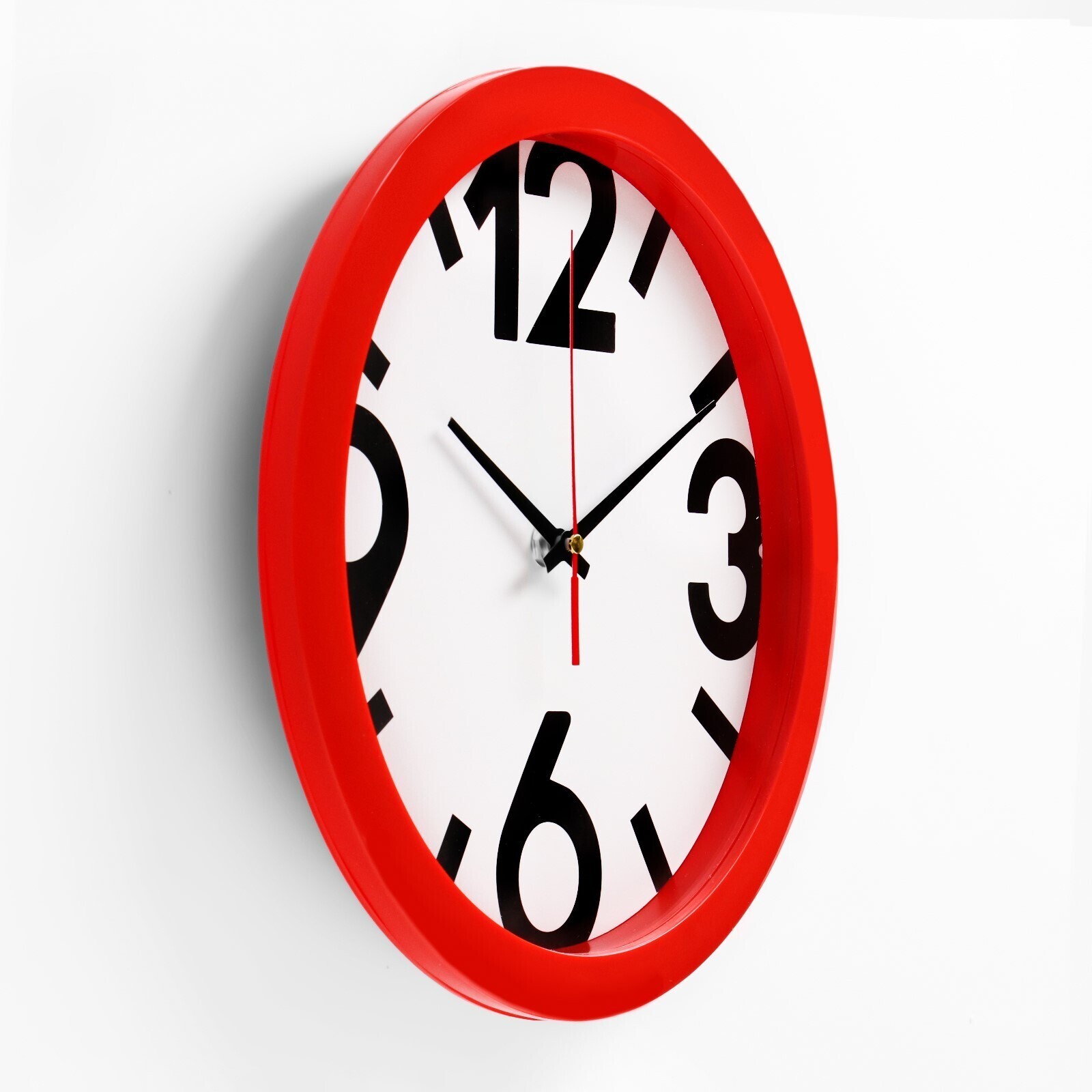Часы настенные, серия: Классика, плавный ход, d=28 см, красный обод