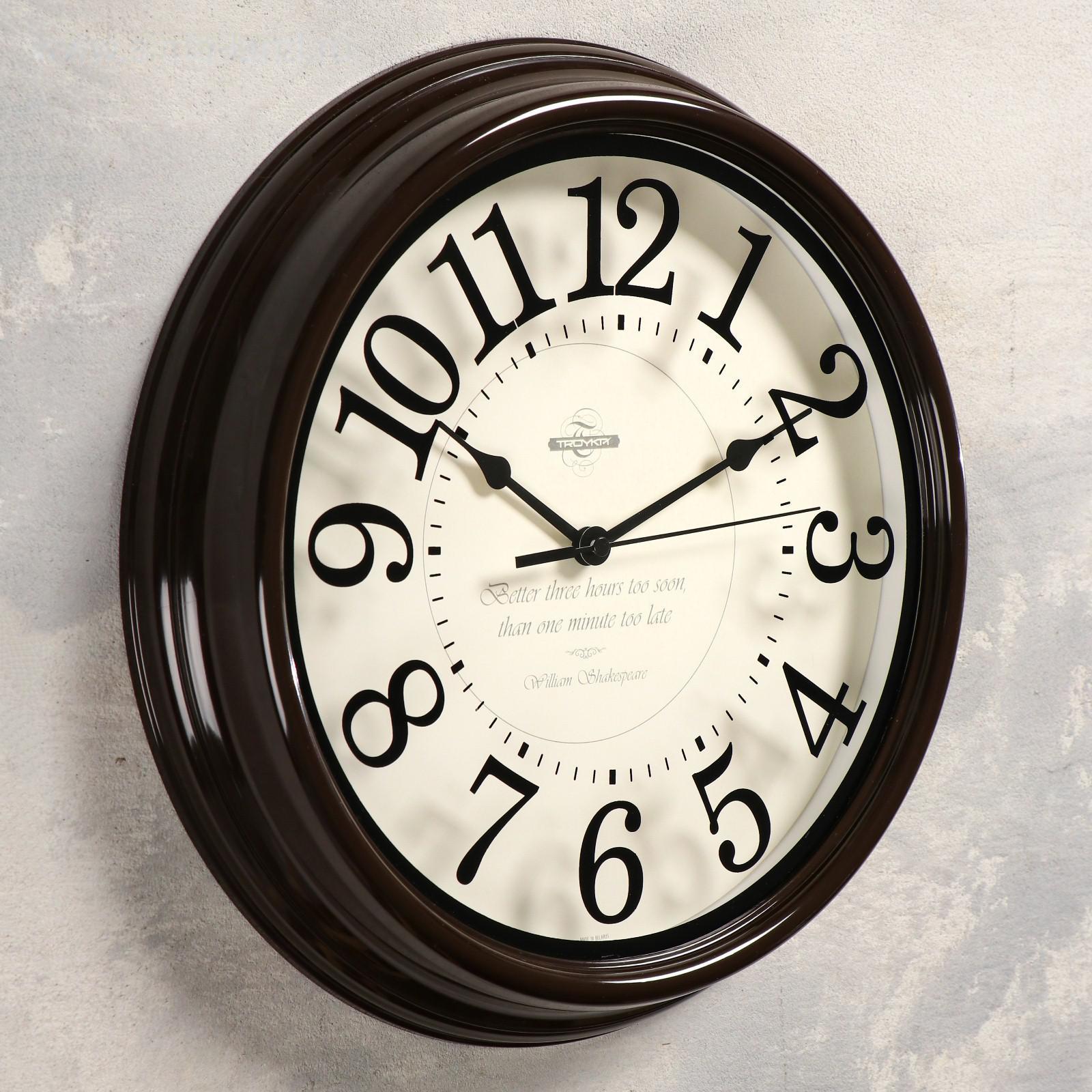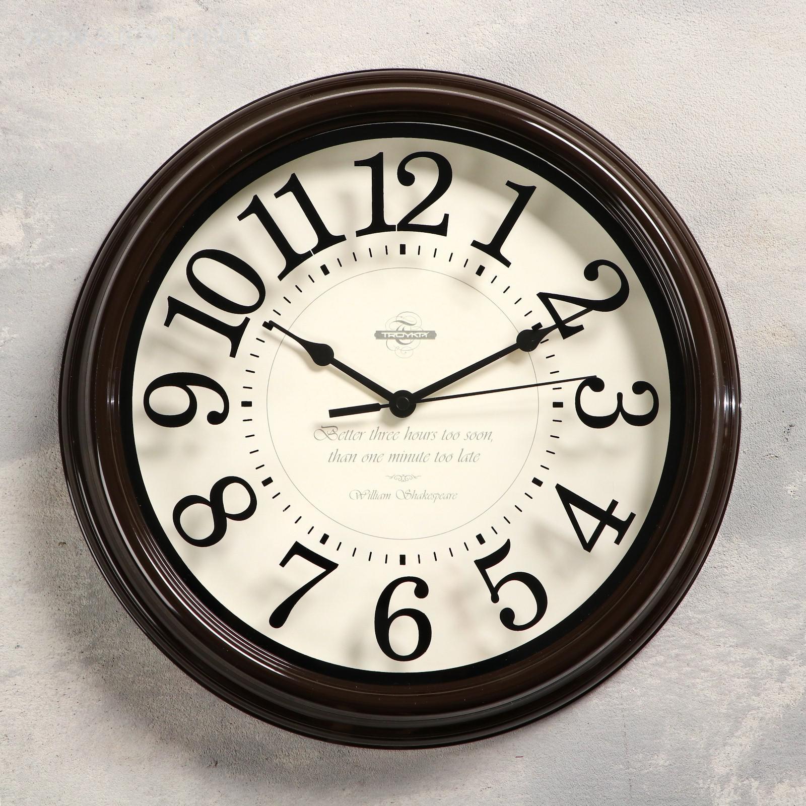 Часы настенные, серия: Классика, плавный ход, d=31 cм, печать по стеклу, коричневые
