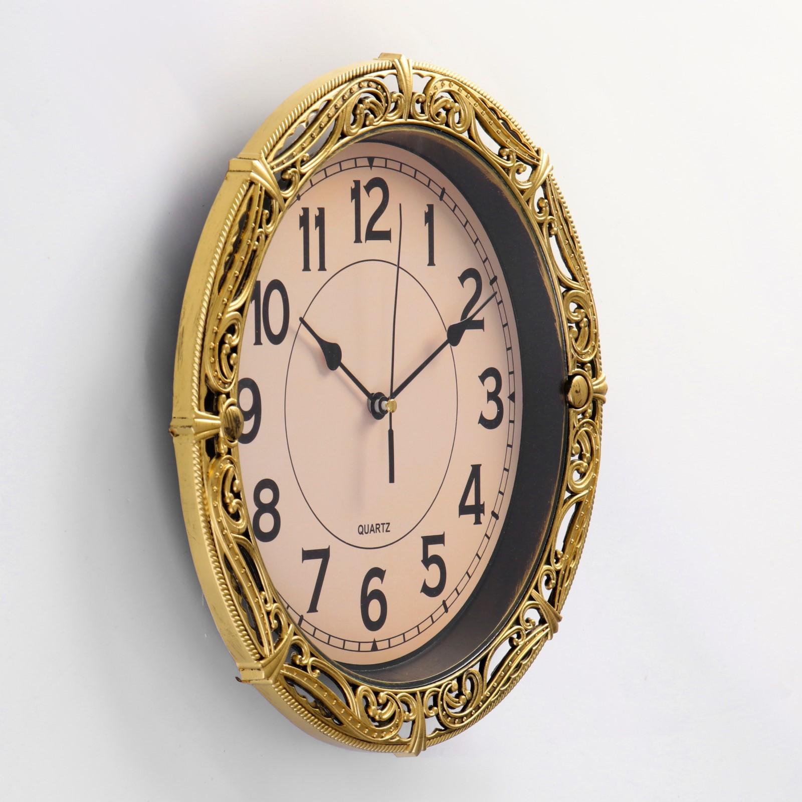 Часы настенные, серия: Интерьер, "Джина", дискретный ход, d-30 см, циферблат 17 см, золото