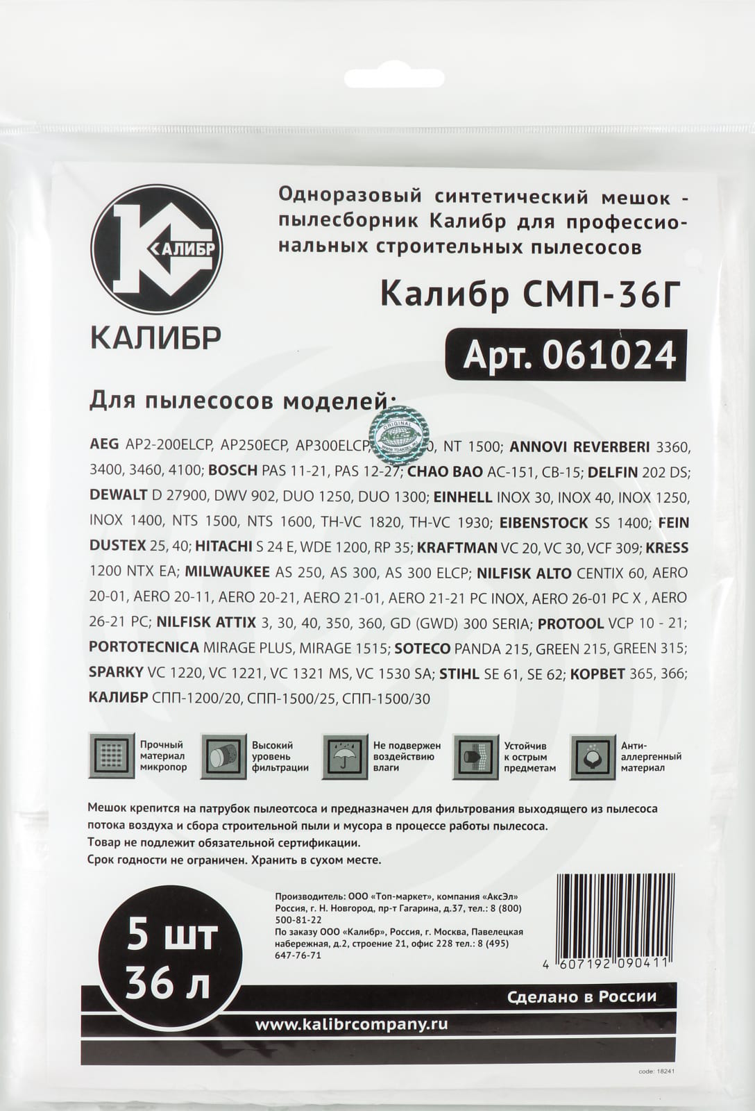 Комплект пылесборников для пылесоса Калибр СМП-36Г / 61024 (5 шт.)