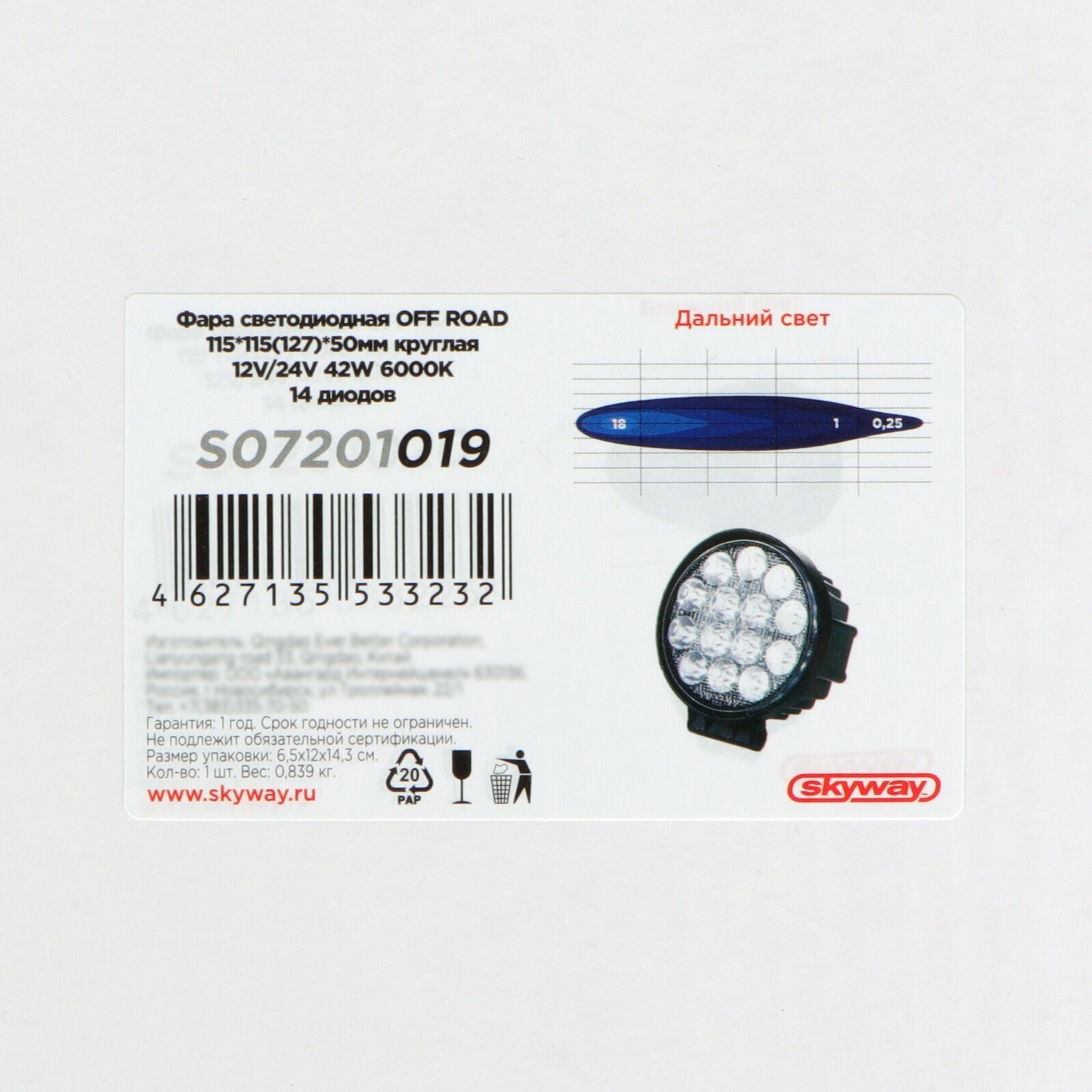 Фара светодиодная Skyway OFF ROAD 115 мм, 12/ 24 В, 42 Вт, 6000 K, 14 диодов