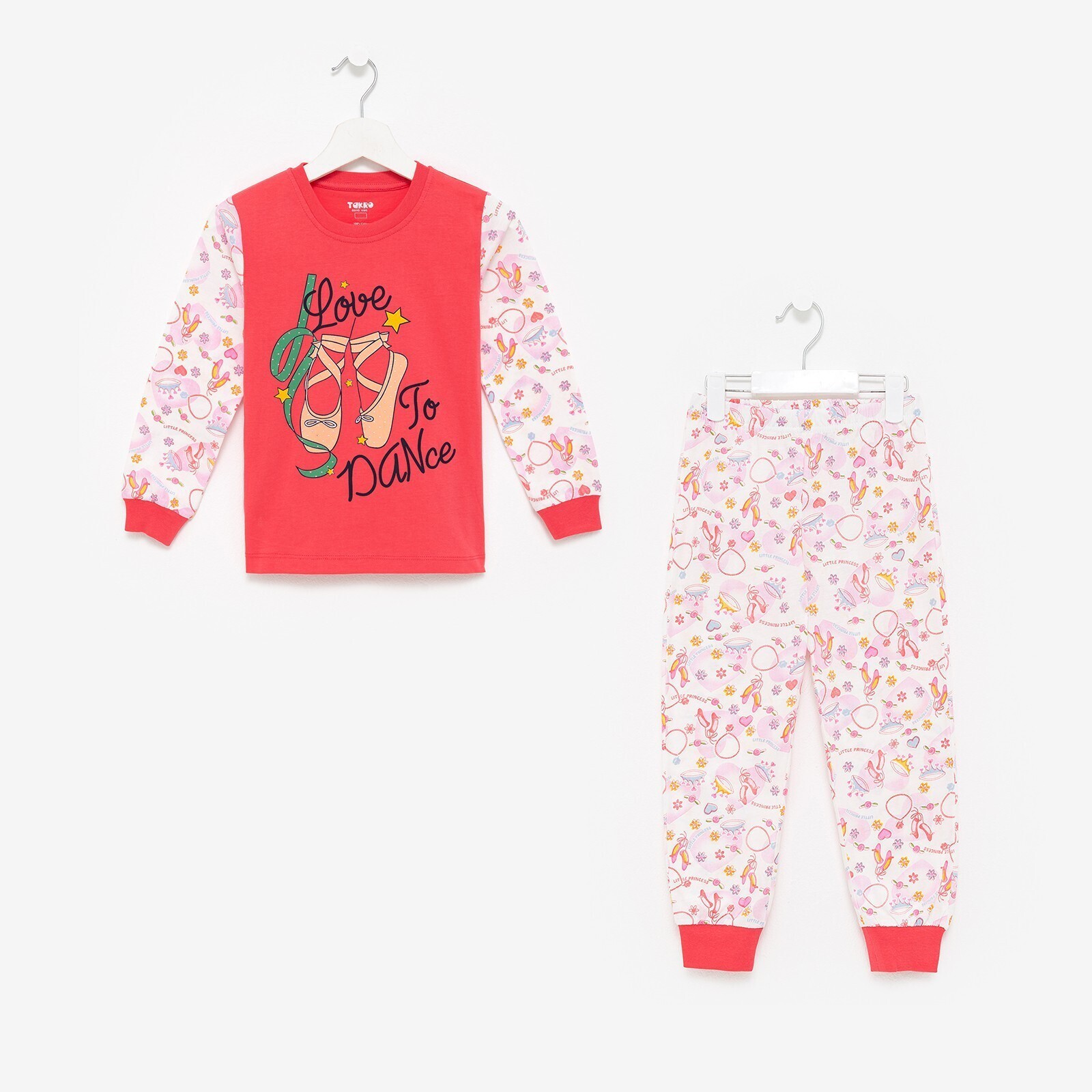 Пижама для девочки, цвет коралловый/белый, рост 98 см