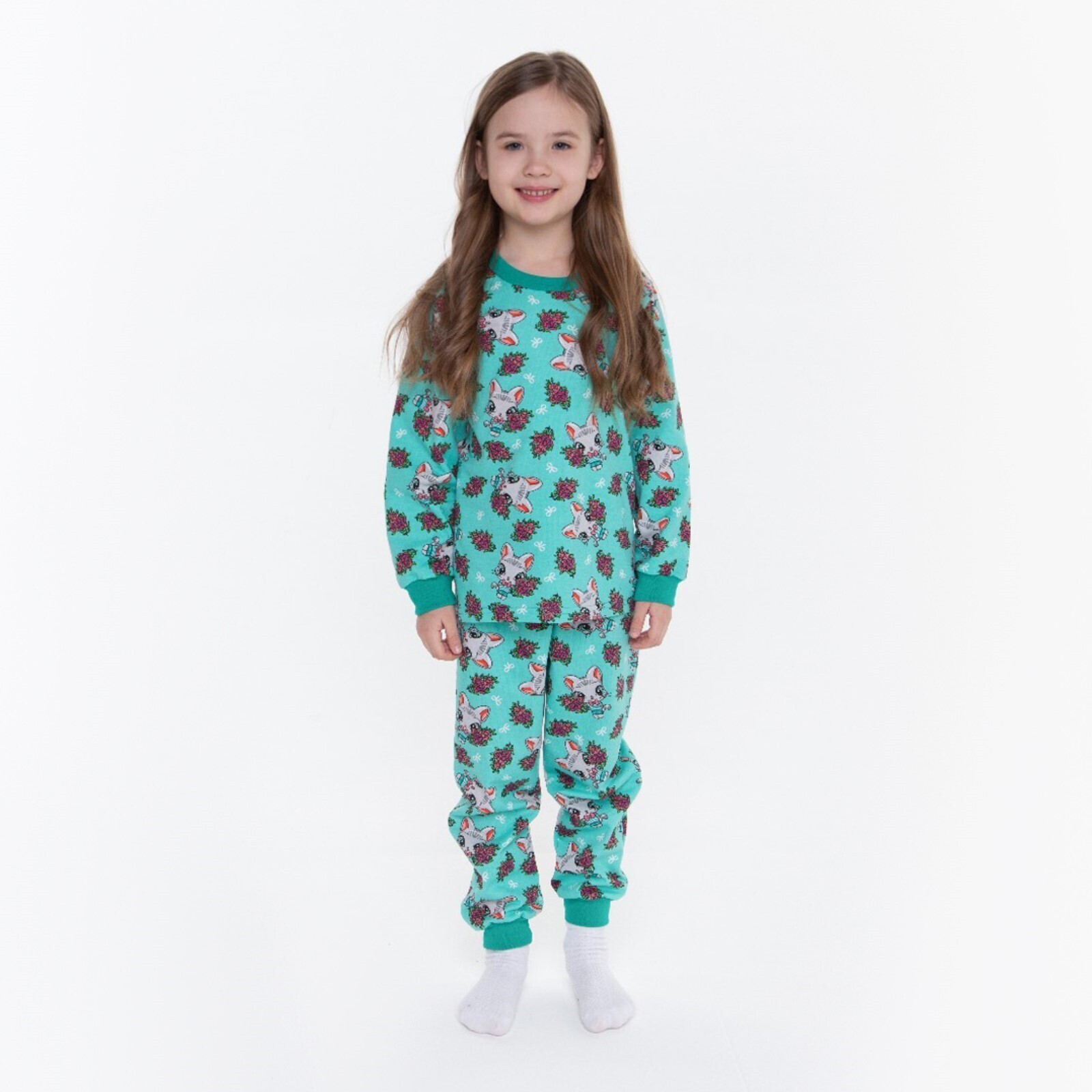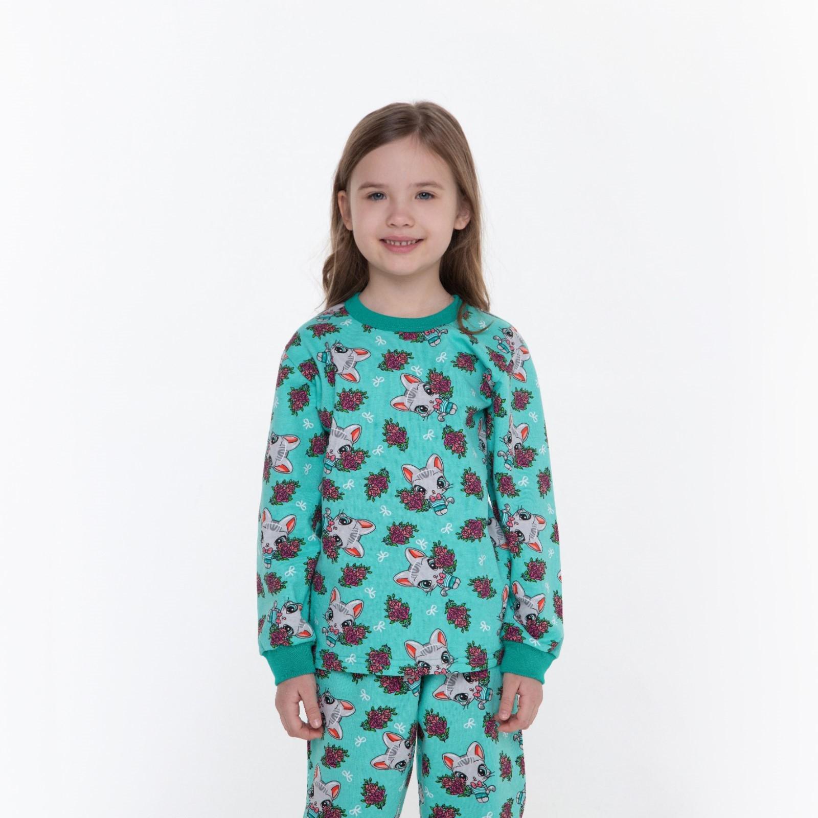 Пижама для девочки НАЧЁС, цвет зелёный/котики, рост 98 см