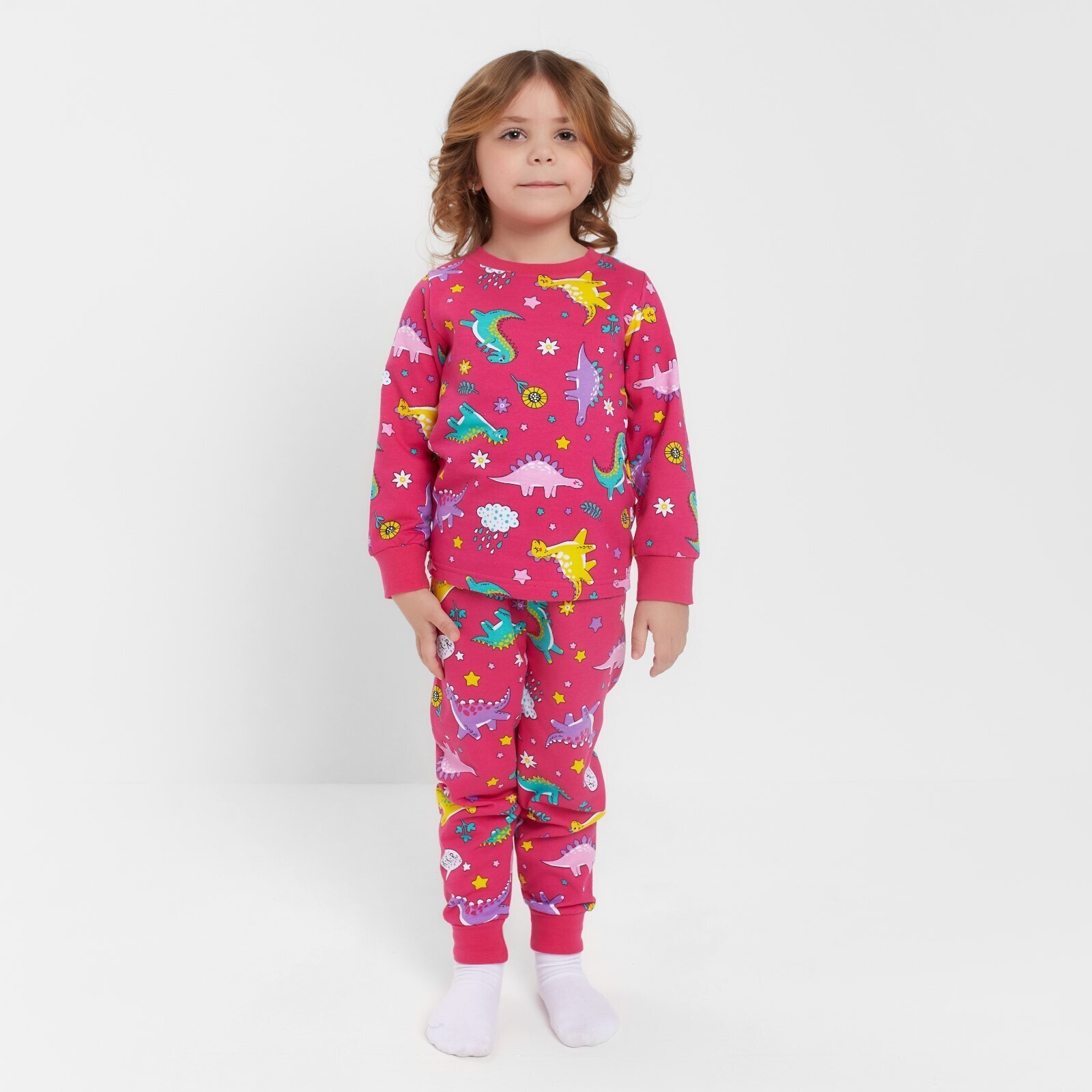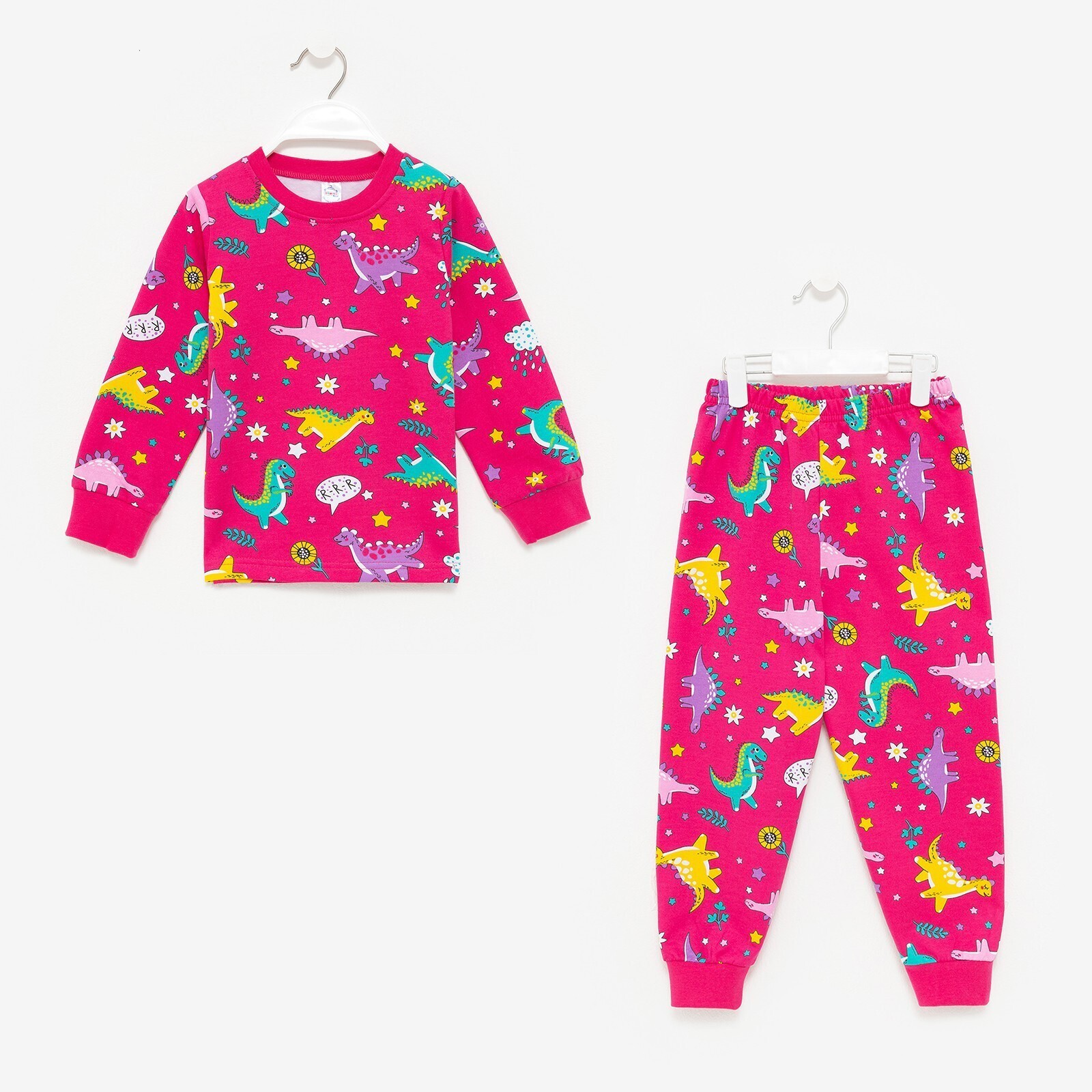 Пижама для девочки НАЧЁС, цвет фуксия/динозавры, рост 98 см