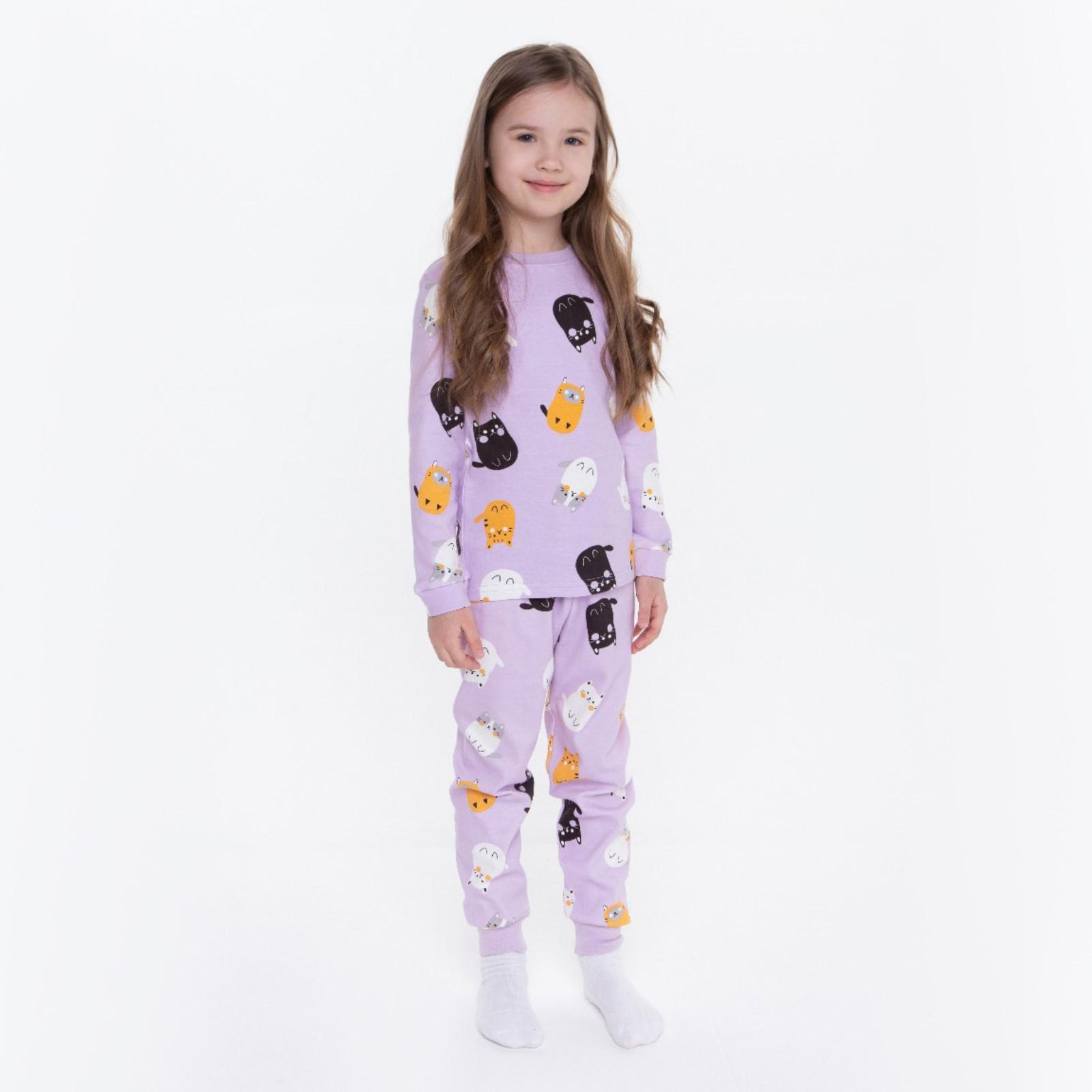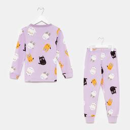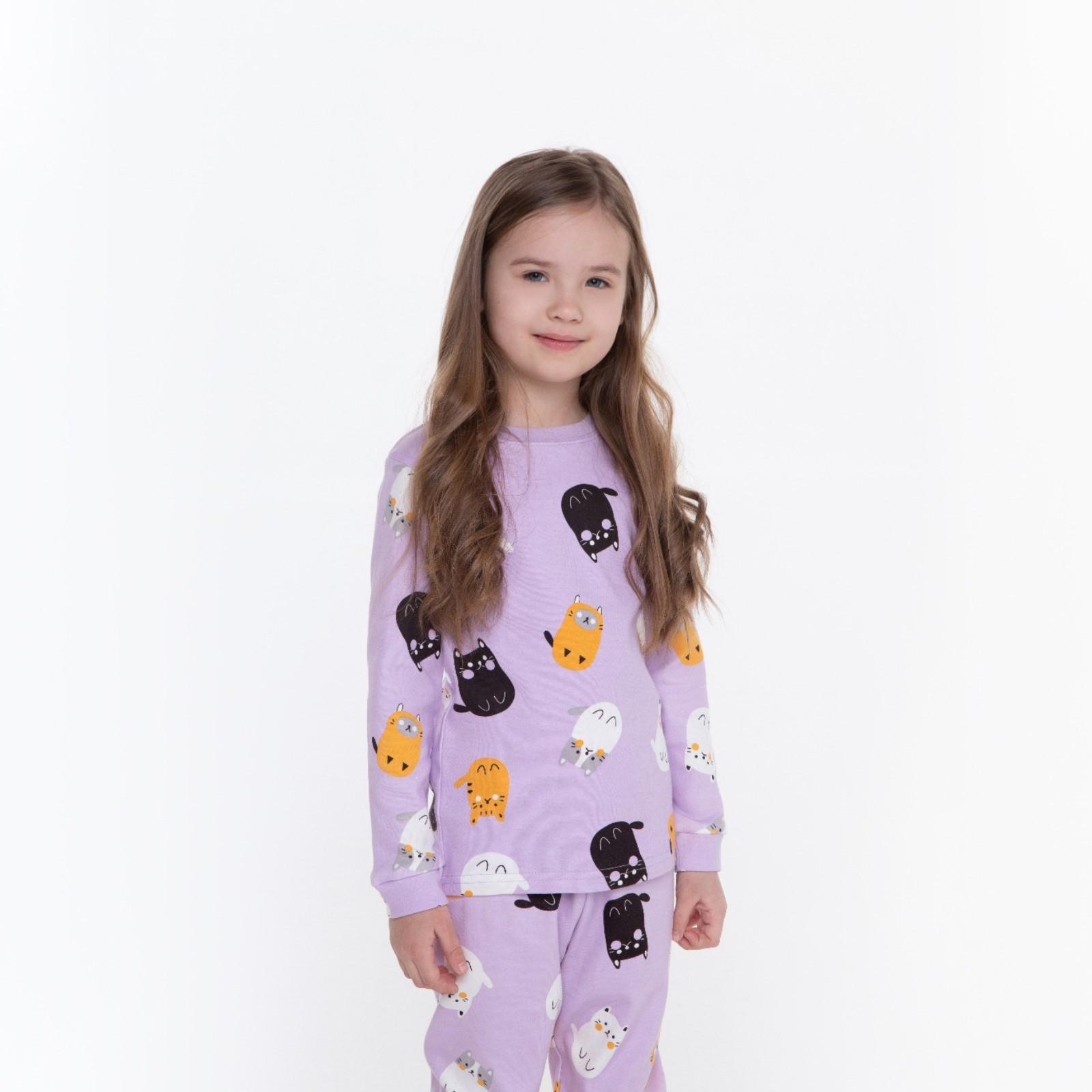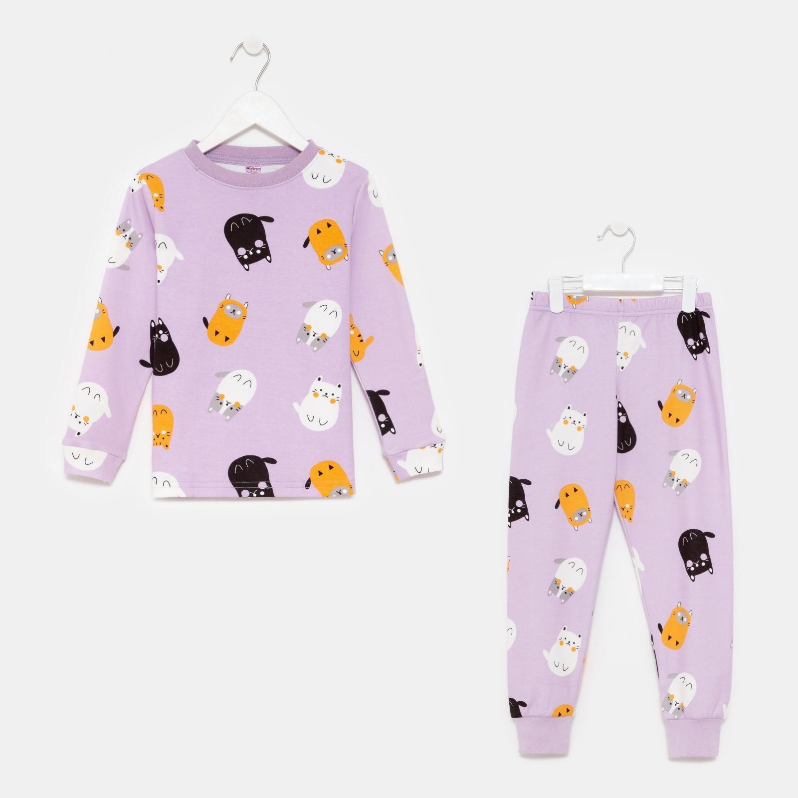Пижама для девочки, цвет лиловый/кот, рост 98 см