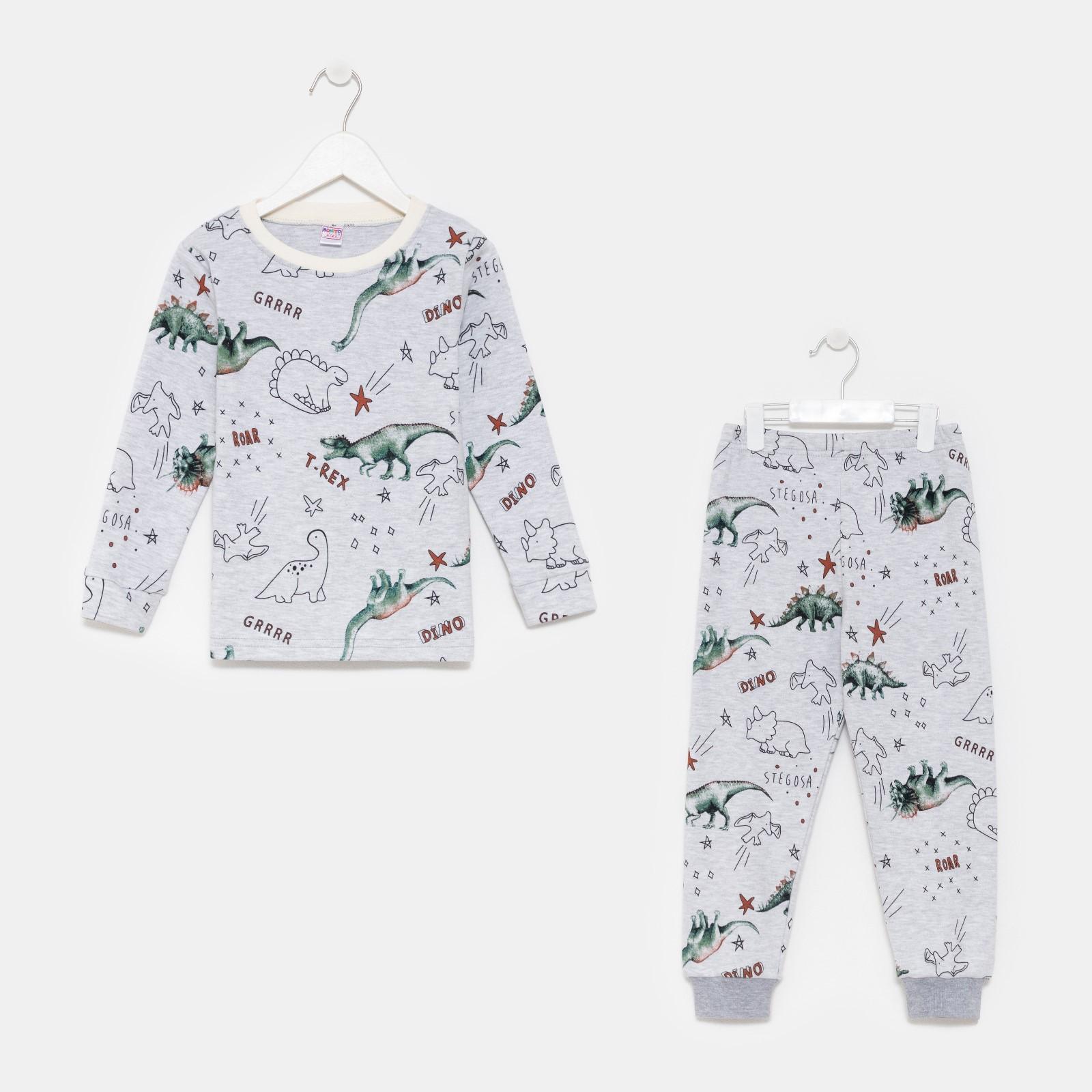 Пижама для мальчика, цвет серый/динозавр, рост 98 см