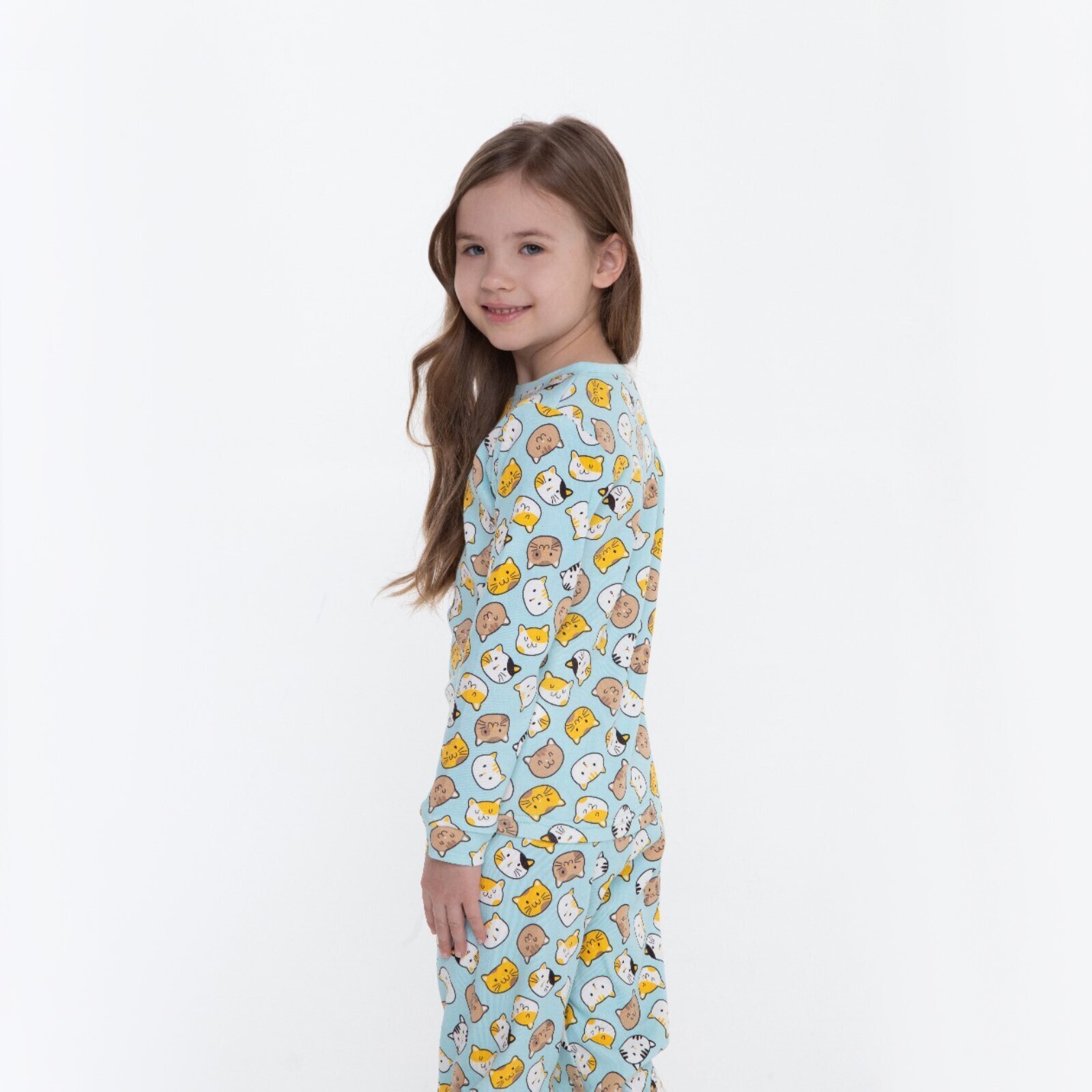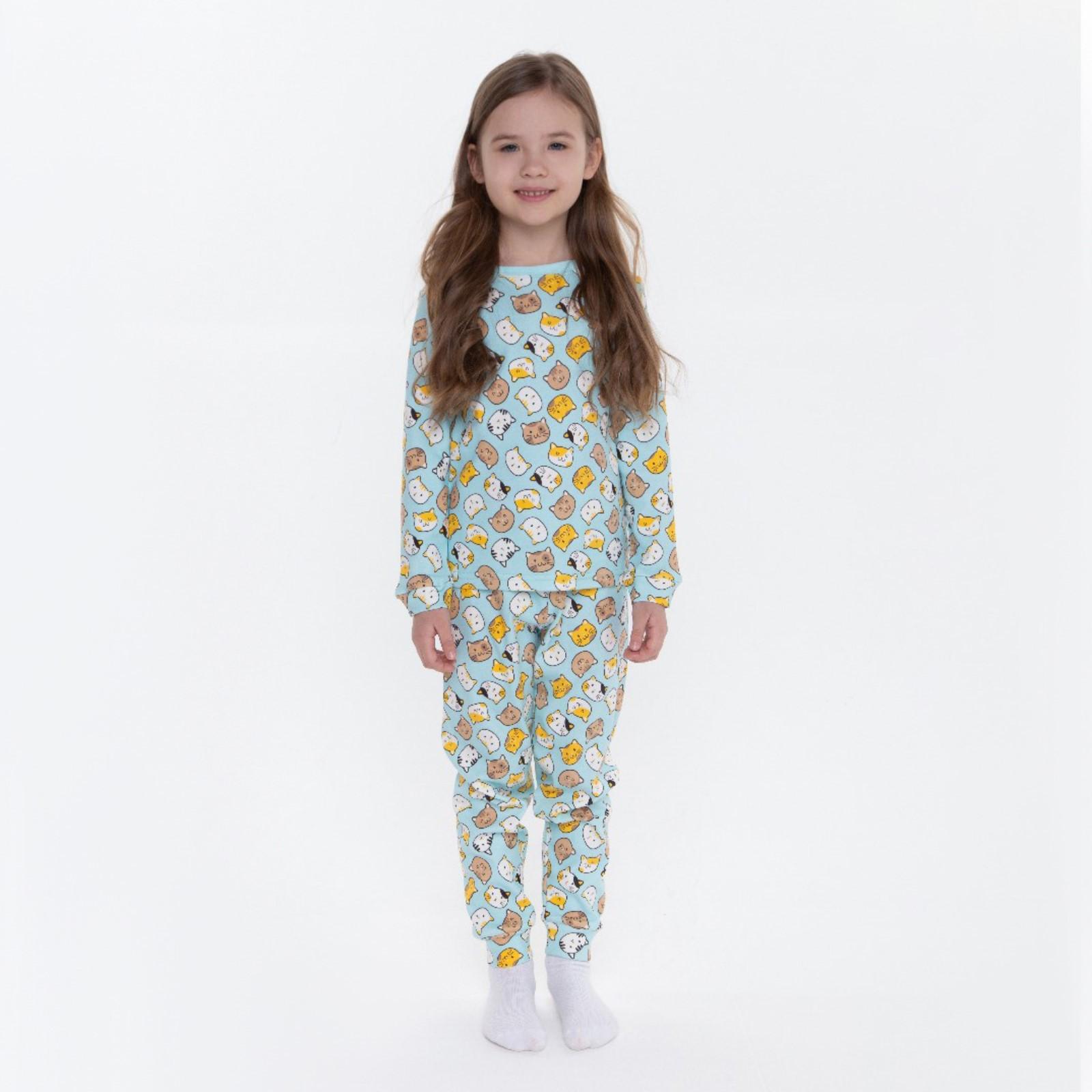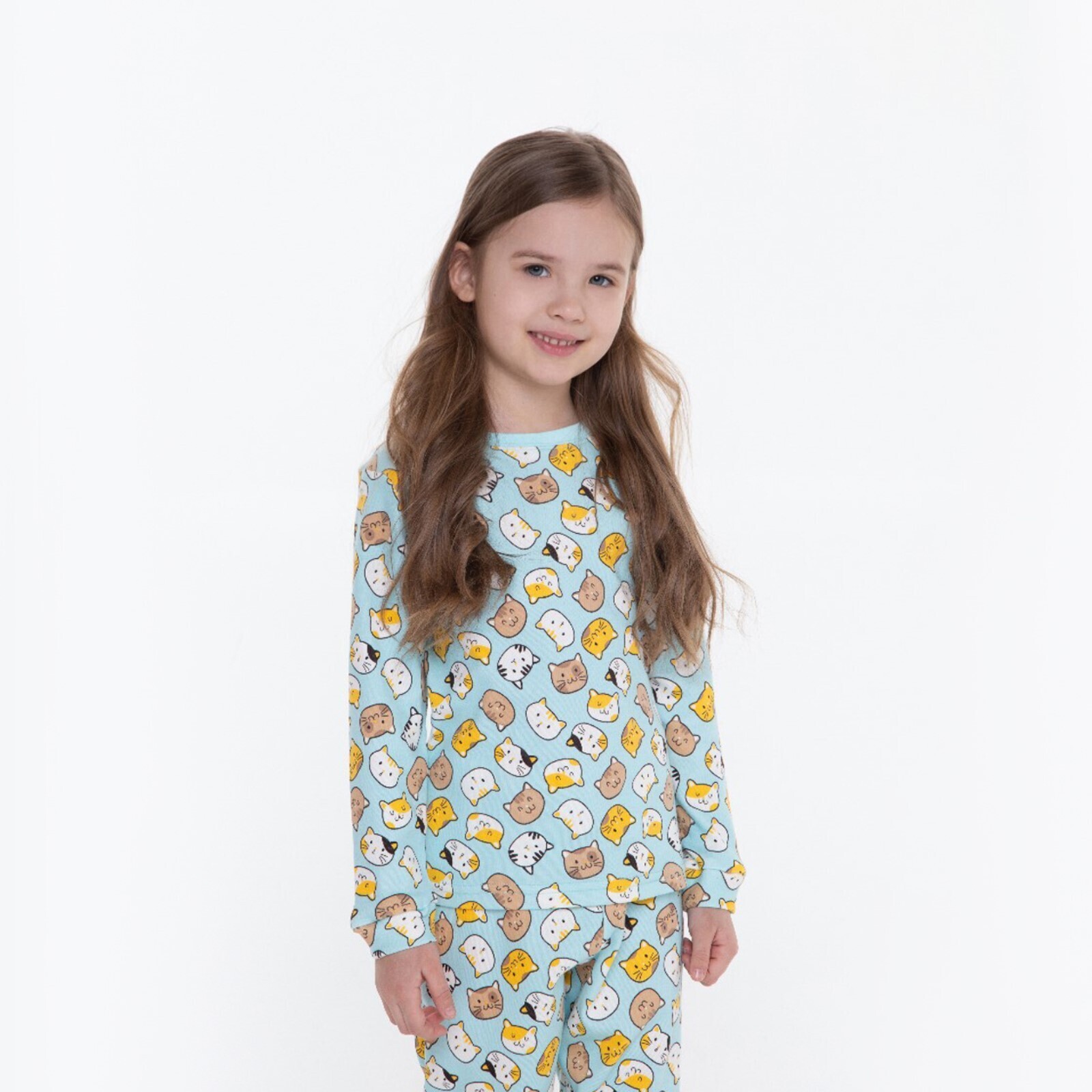 Пижама для девочки, цвет ментоловый/кот, рост 98 см