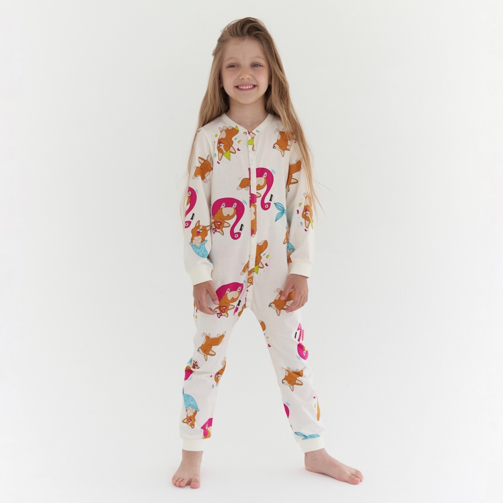 Комбинезон для сна для девочки, рост 110 см, цвет молочный