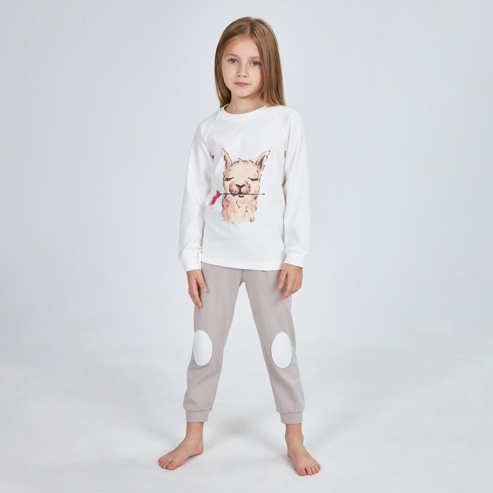 Пижама для девочки, цвет молочный, серый, рост 104 см