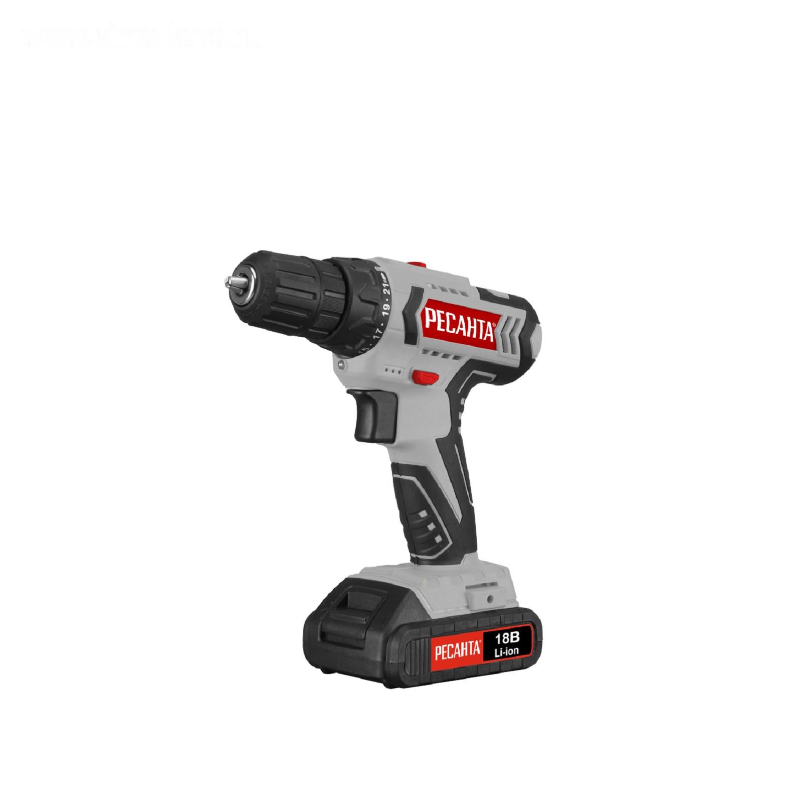 Дрель-шуруповерт "Ресанта" ДА-18-2ЛК 75/14/5, аккумуляторная, 18 В, 16+1, 2 АКБ, кейс