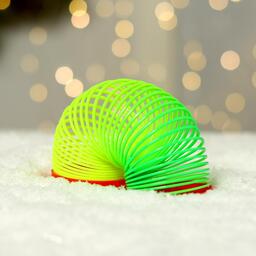 А ещё красочная пружинка умеет самостоятельно передвигаться — шагать вниз по ступенькам. Количество её трюков безгранично!