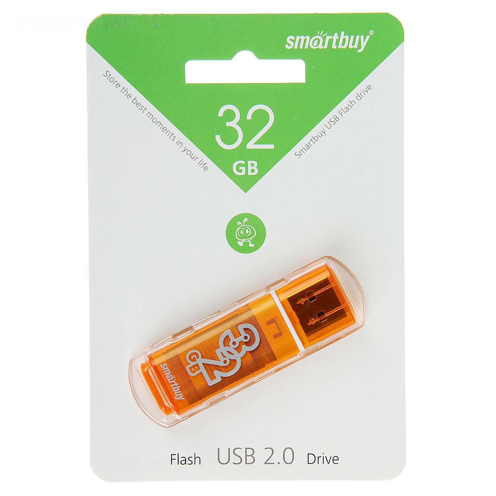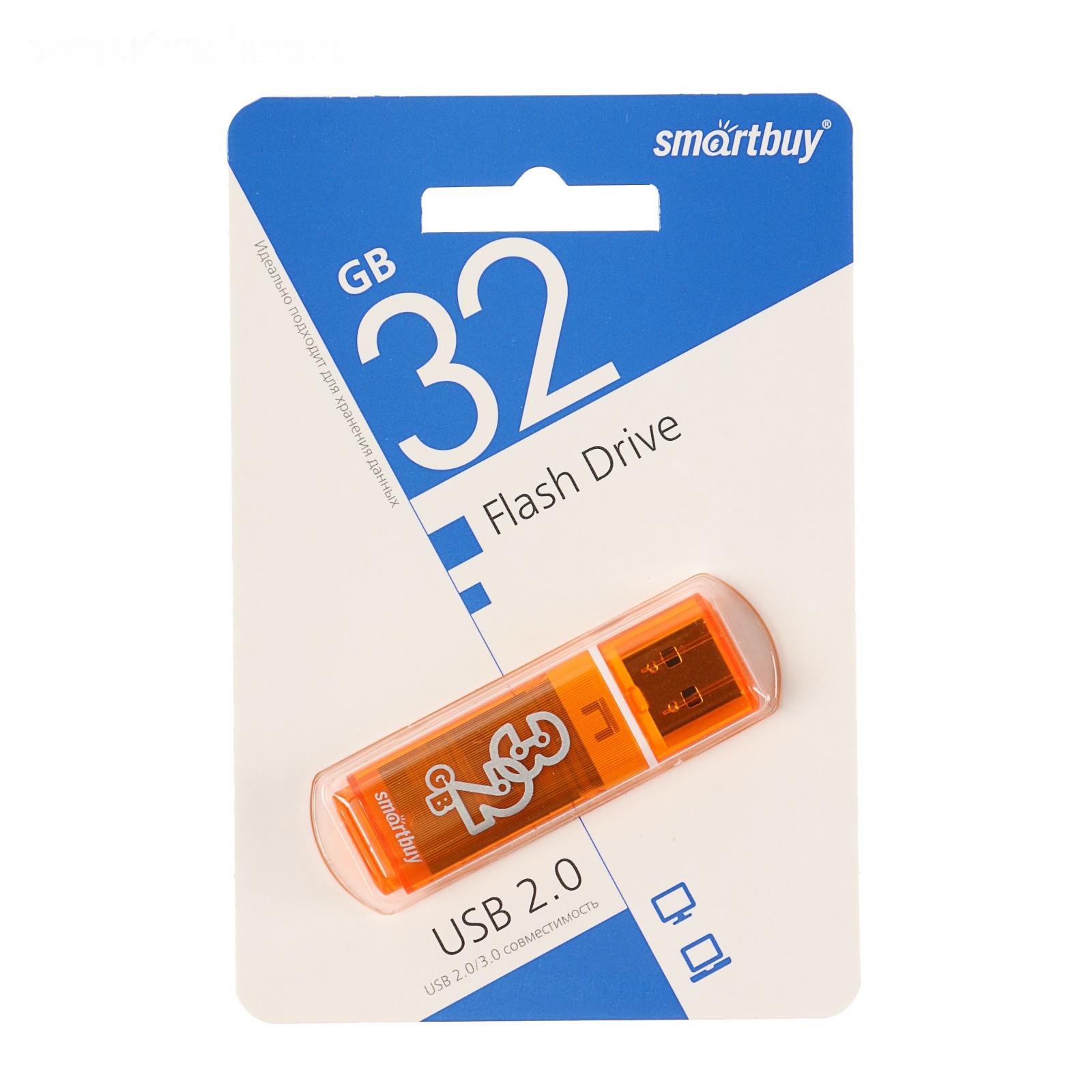 Флешка Smartbuy Glossy series Orange, 32 Гб, USB2.0, чт до 25 Мб/с, зап до 15 Мб/с,оранжевая