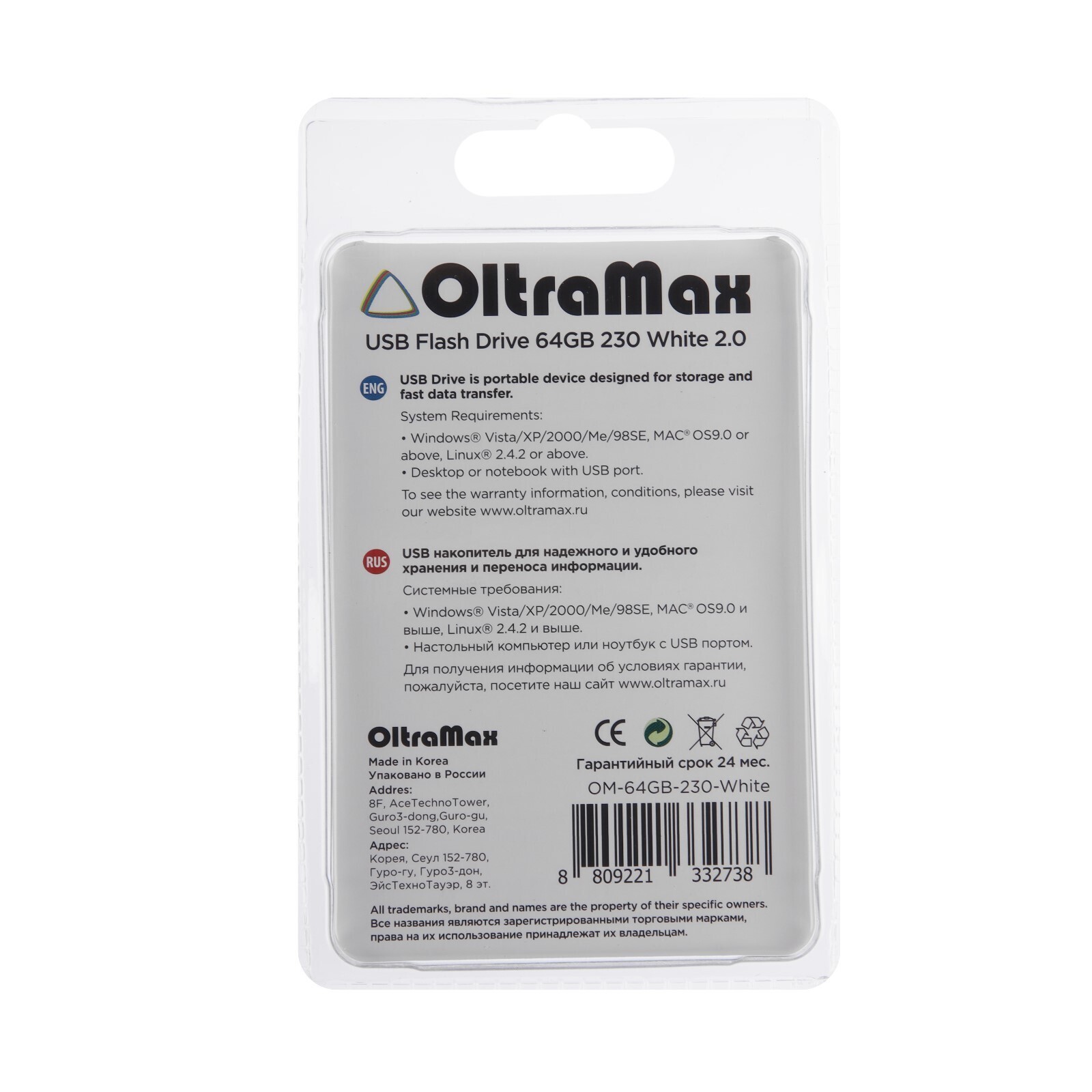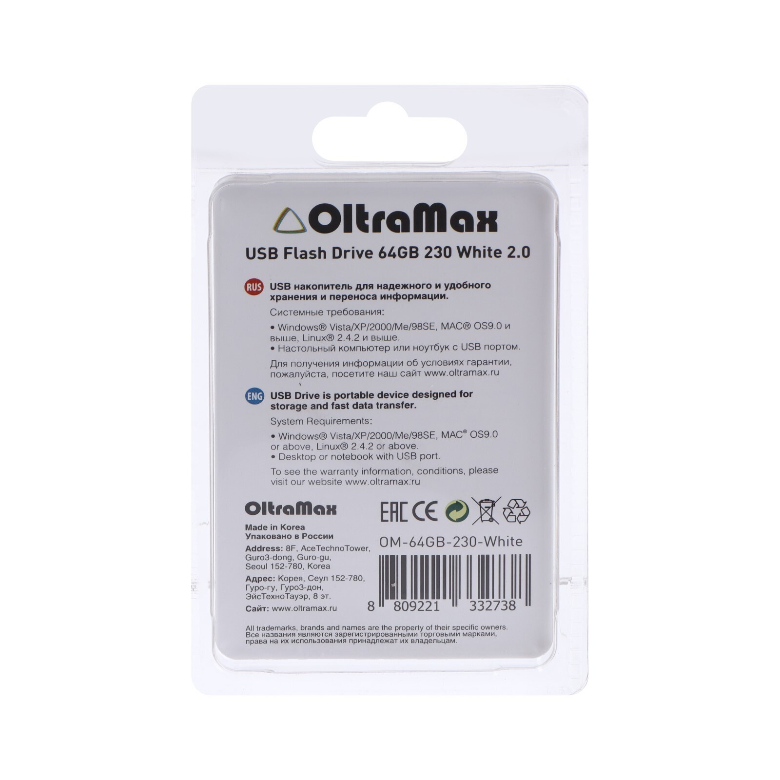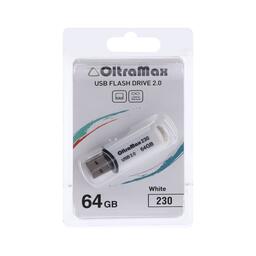 Флешка OltraMax 230, 64 Гб, USB2.0, чт до 15 Мб/с, зап до 8 Мб/с, белая