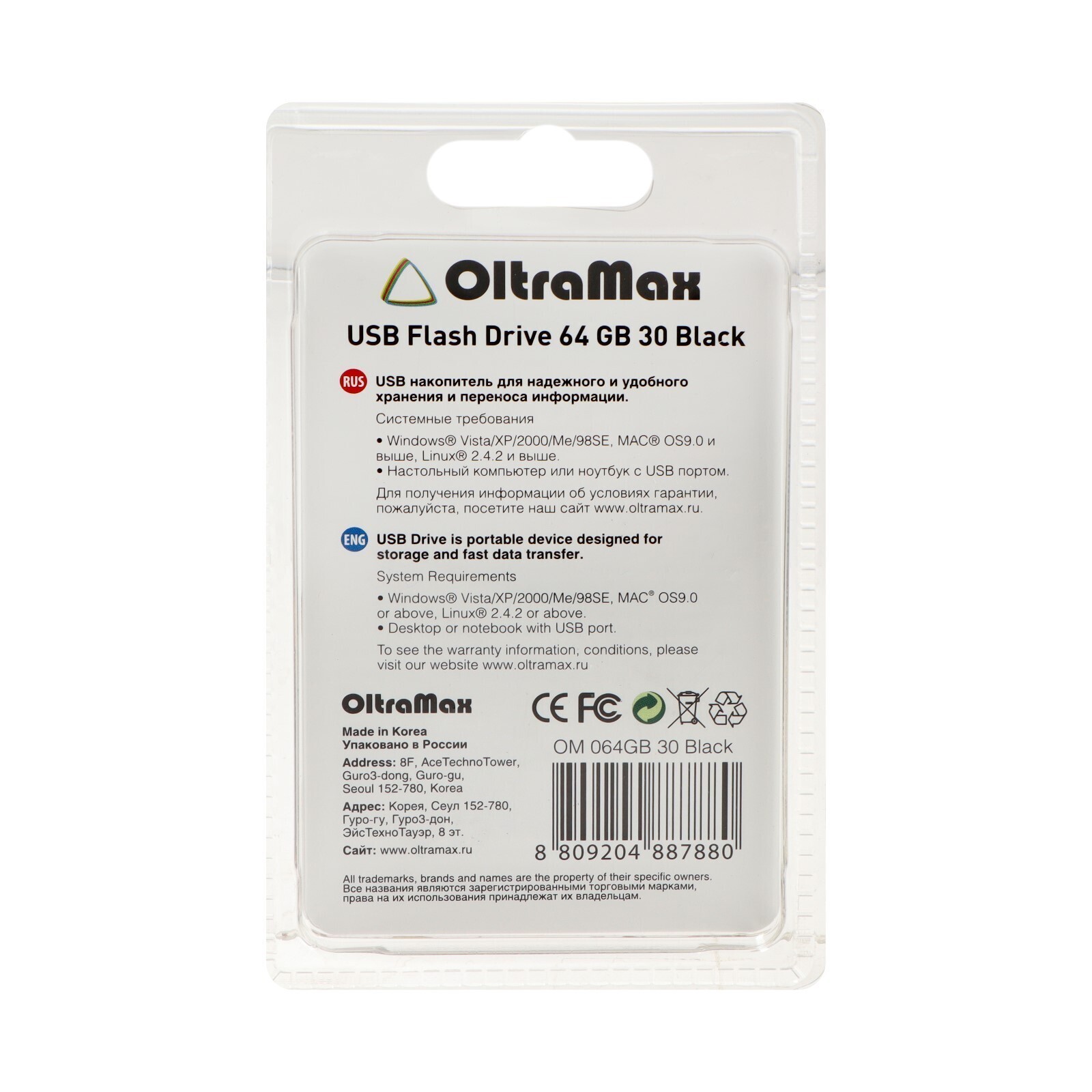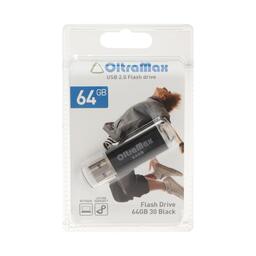 Флешка OltraMax 64, 64 Гб, USB2.0, чт до 15 Мб/с, зап до 8 Мб/с, чёрная